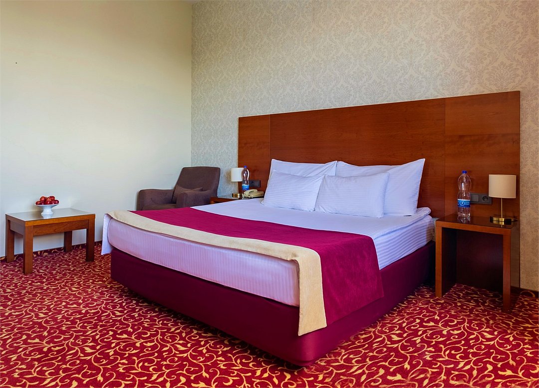 Номера данной категории предназначены для проживания одного или двух человек. Размещение ребенка возможно на дополнительном месте. В Вашем распоряжении двуспальная кровать размера King Size, рабочий стол, кондиционер, телевизор, чайная станция, сейф. В ванной комнате ванна, фен и все необходимые банные принадлежности.Услуги и удобства
