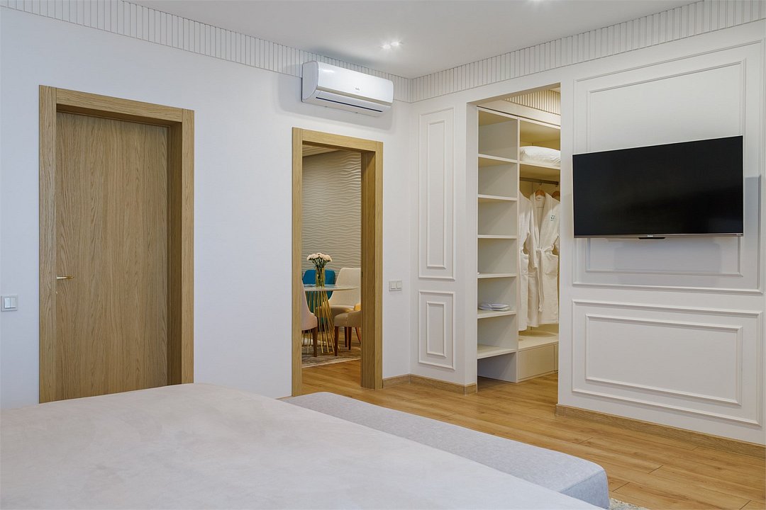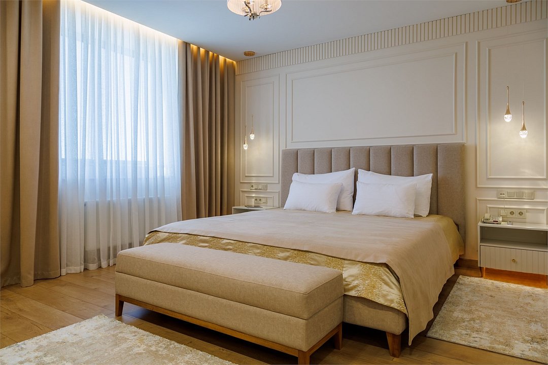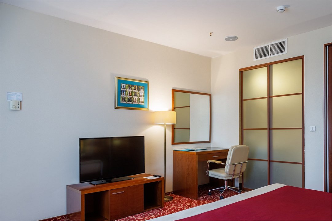 телевизор, Wi-Fi, телефон, кондиционер, фен, ванна, банные принадлежности, кровать «King size», гардеробная, мини-бар, сейф, вид на город, без питомцевВ гостиничном номере