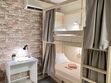 Затрудняюсь описать расположение, но пространство организовано очень разумно. В коридоре стоят стеллажи-сейфы, имеется довольно большая общая многофункциональная комната: здесь и кухня, и гостиная, и детский уголок. Набор посуды удовлетворит любого путешественника, ну, если только вы не собираетесь готовить фуа-гра, запекать поросенка и т.п. Здесь же можно бесплатно заварить чай. По-моему, там был телевизор, но никто из нас его не смотрел. Ни времени, ни желания не возникло