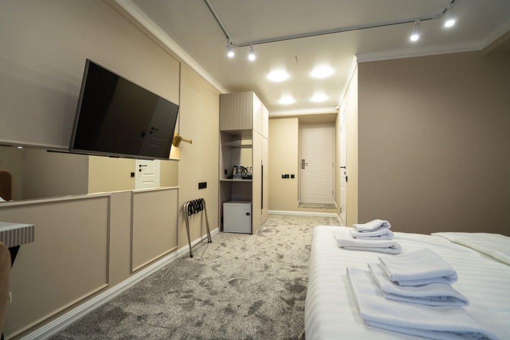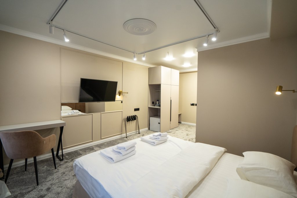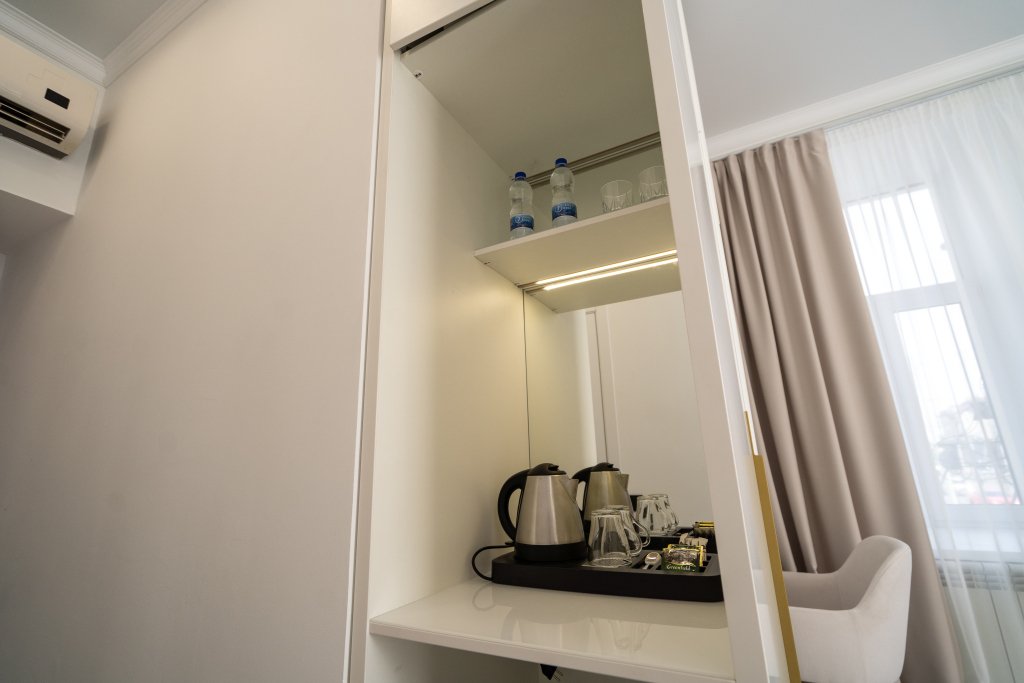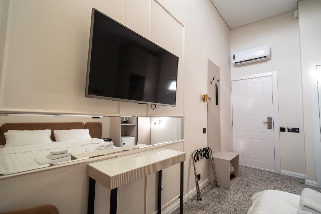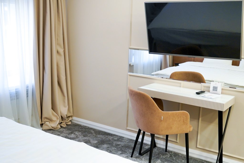 Номер обставлен и оснащён необходимым. Есть мини-бар. Оснащение зависит от выбранной категории номера.