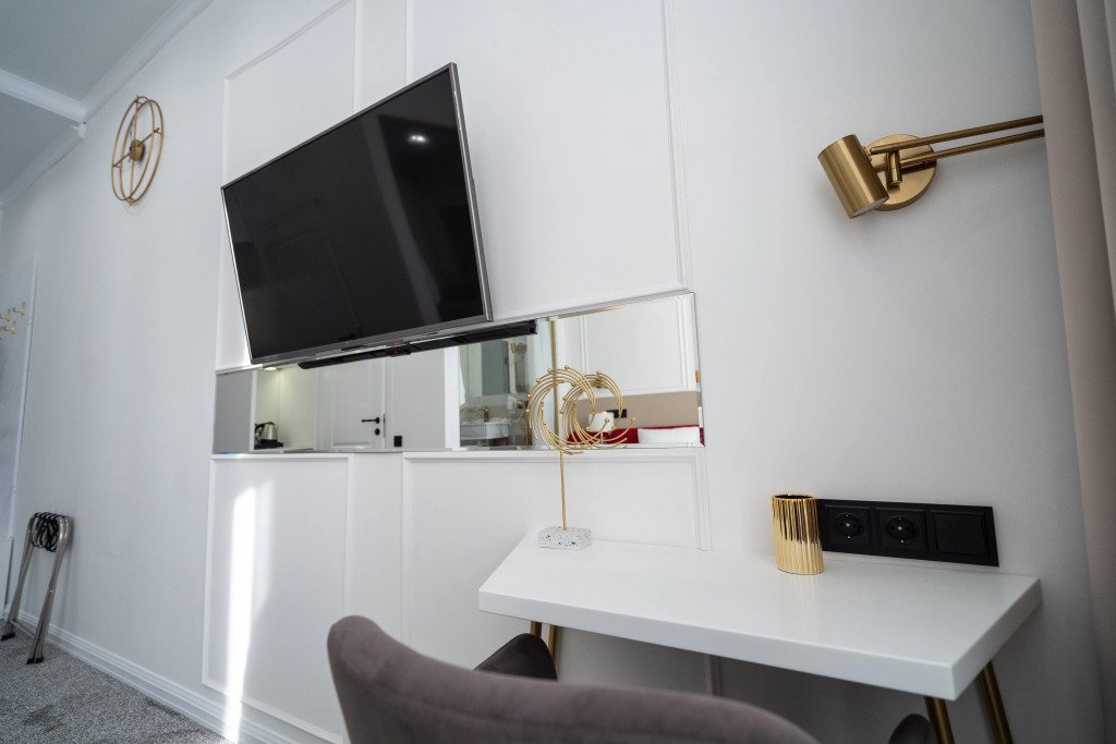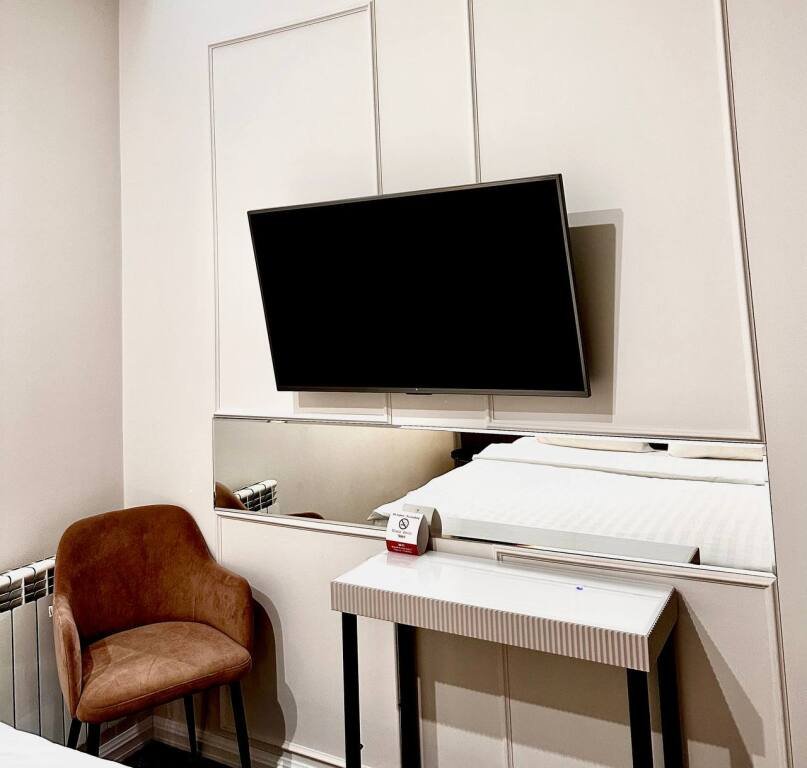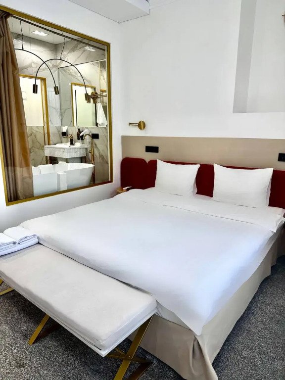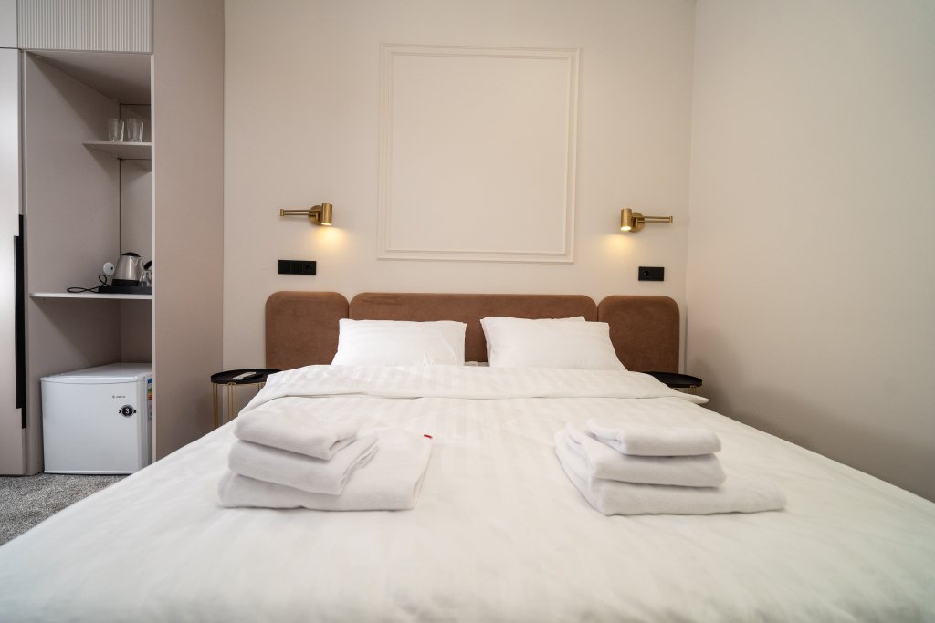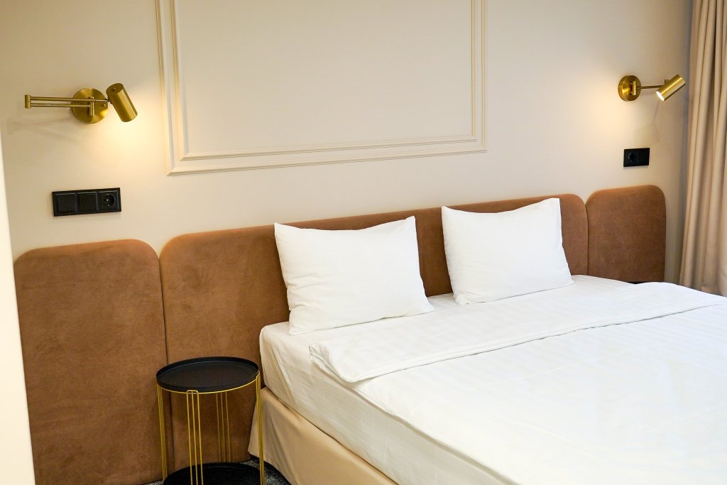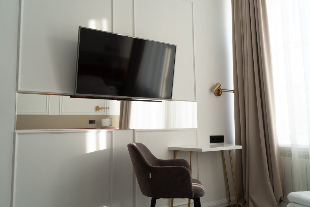 Номер обставлен и оснащён необходимым. Есть мини-бар. Оснащение зависит от выбранной категории номера.