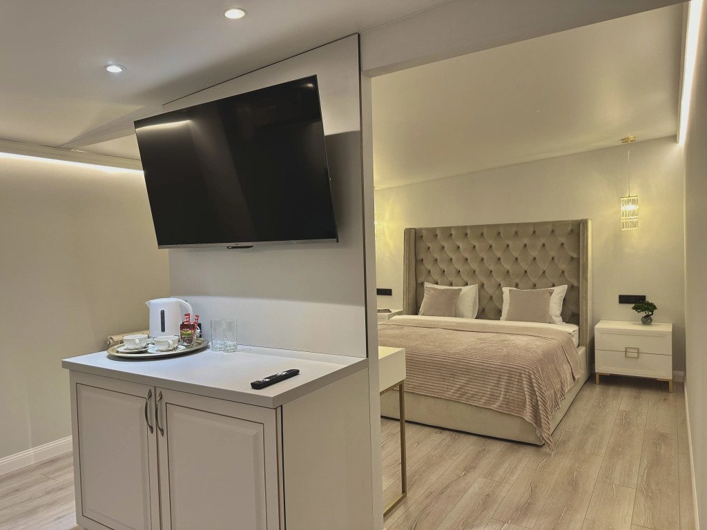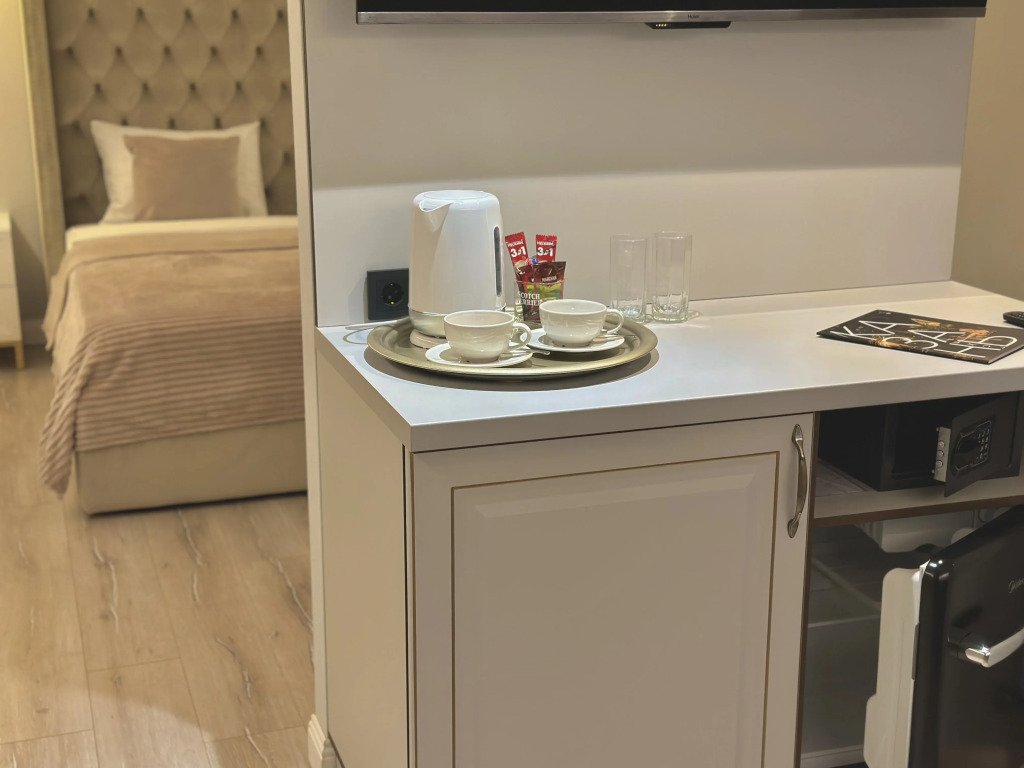В номере вы найдёте халат. Оснащение зависит от выбранной категории номера.