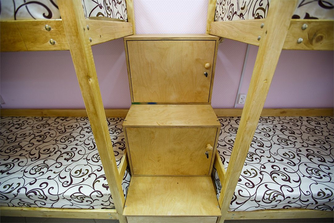 В шестиместном номере расположены 3 двухъярусные кровати с индивидуальными занавесками и тумбами для личных вещей. Каждое спальное место оснащено светильником и розеткой для удобства. В номере имеется шкаф для вещей и стул. При необходимости в номер можно поставить дополнительную отдельную кроватьУслуги и удобства