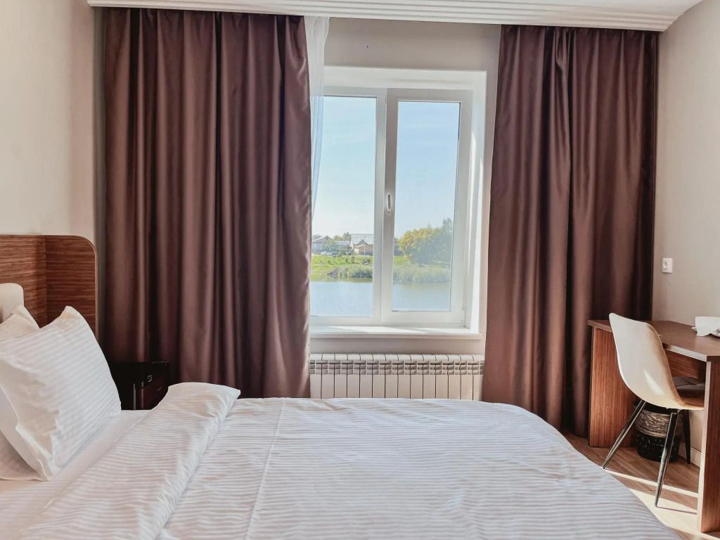 телевизор, Wi-Fi, кондиционер, фен, кофемашина, ванная комната, душевая кабина, халаты, банные полотенца, тапочки, косметические средства, двуспальная кровать, шкаф для одежды, письменный стол, багажная тумба, зеркало, звуконепроницаемые стены и окна, чайный набор, сейф, чайник, унитаз, раковина, стул, мини-холодильник, москитная сетка, гостиничная парфюмерия, вид на озеро, номер для некурящих, вешалки-плечики, бутилированная вода, мыло, затемняющая штора, без питомцевВ гостиничном номере