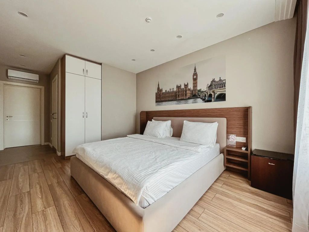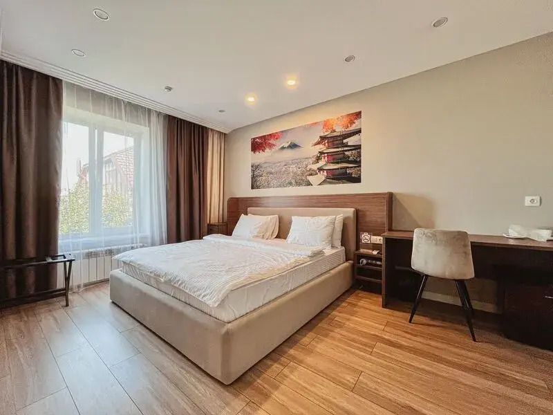 телевизор, Wi-Fi, кондиционер, фен, кофемашина, ванная комната, душевая кабина, халаты, банные полотенца, тапочки, косметические средства, двуспальная кровать, шкаф для одежды, письменный стол, багажная тумба, зеркало, звуконепроницаемые стены и окна, чайный набор, чайник, унитаз, раковина, отопление, вид на сад, стул, мини-холодильник, москитная сетка, гостиничная парфюмерия, номер для некурящих, вешалки-плечики, бутилированная вода, мыло, затемняющая штора, без питомцевВ гостиничном номере