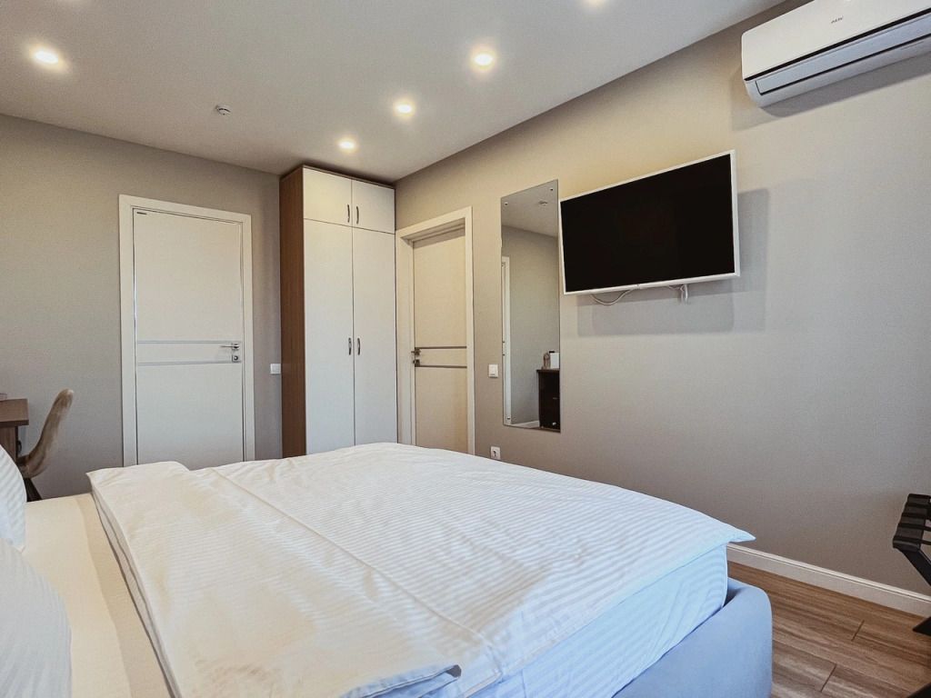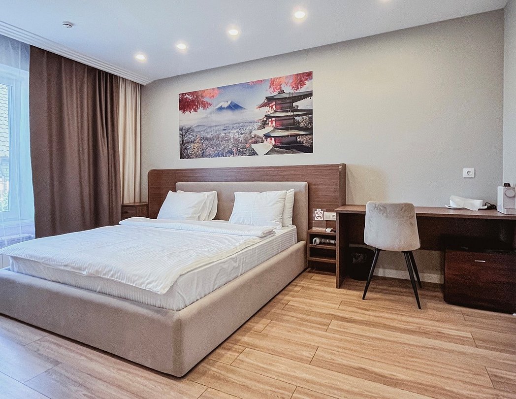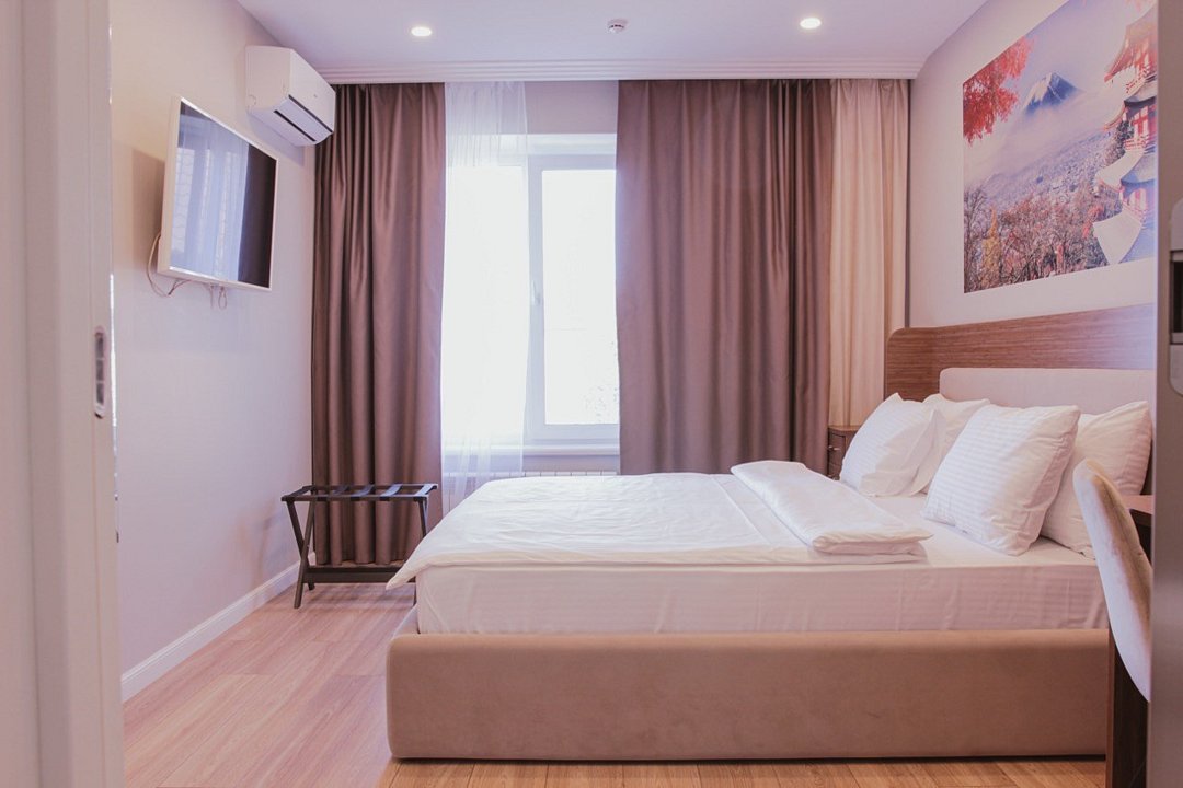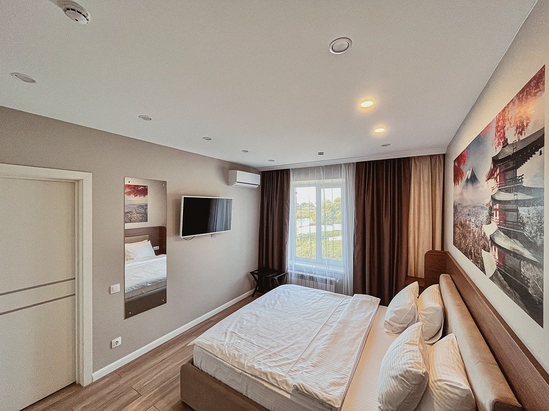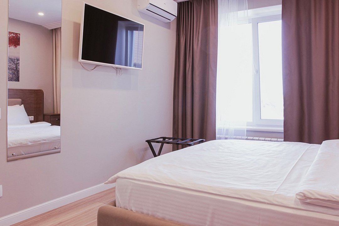 Чтобы вы могли отдохнуть после долгого дня, в номере есть телевизор и халат. Оснащение зависит от выбранной категории номера.