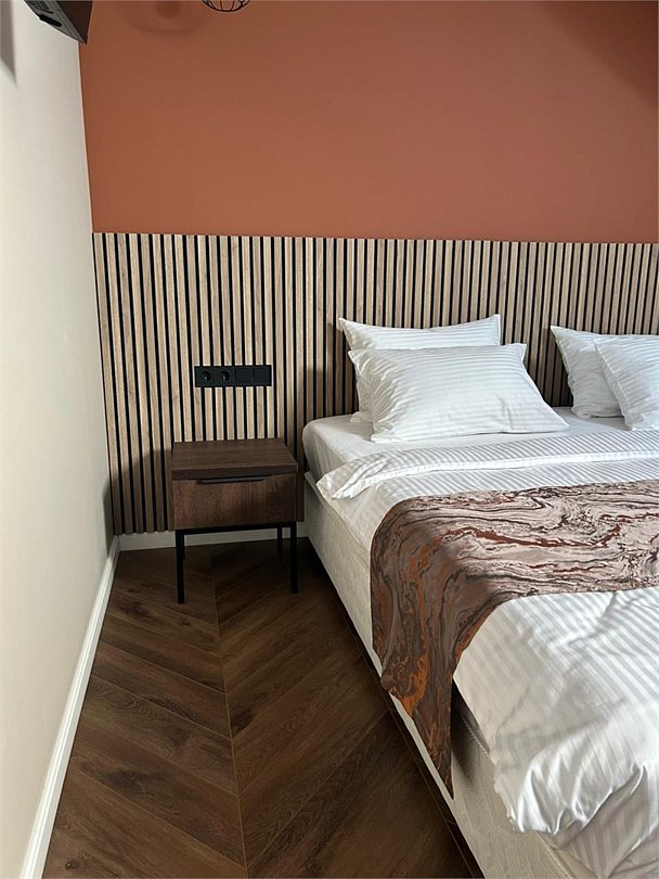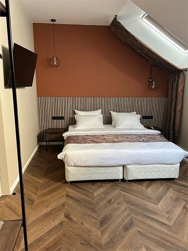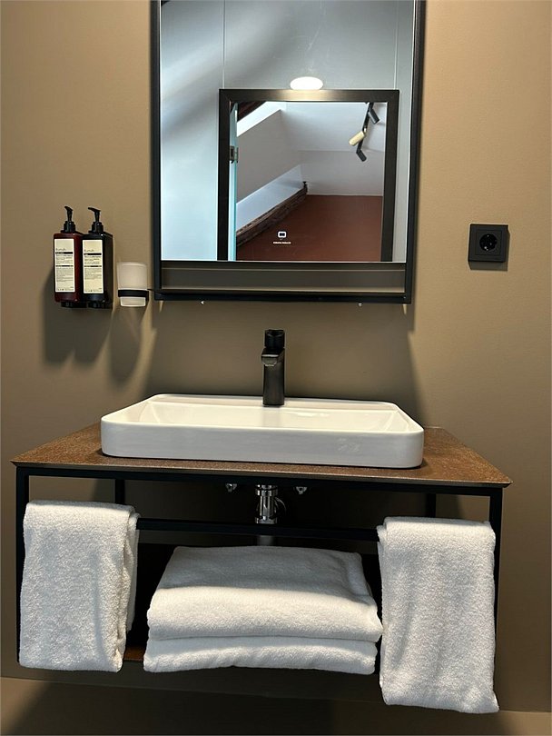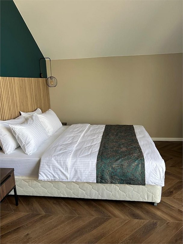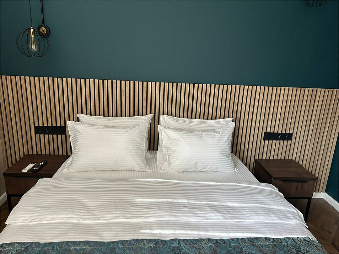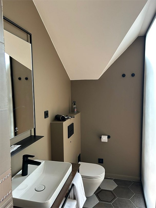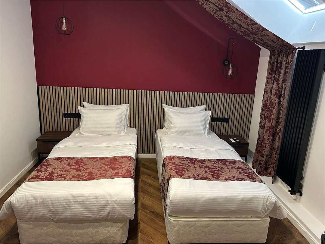Уютный номер категории люкс с панорамным окном и окном мансарда с жалюзи блек аут ,что позволяет хорошо выспаться после прогулок по городу или рабочего дня. Ванная комната оснащена дорогой сантехникой Керама мараци , зеркало с подсветкой , качественные гарнитуры для душа , дизайнерская плитка и качественный ремонт. Также для вашего удобства мы предоставляем фен мощностью 1200кв, и премиальную косметику серии румах (табак- ваниль) шампунь и гель для душа ,мыло для рук и лосьон для тела .Услуги и удобства