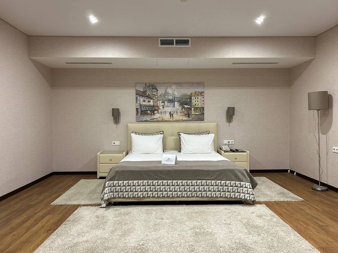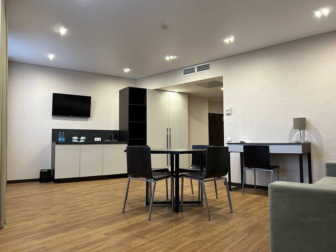 Люкс высшей категории в отеле "Кристалл" — это комфортабельный двухкомнатный номер с видом на Казанский ЖД вокзал (Казань-1). Также: Основные характеристики номера: - Площадь: 65 кв. м — просторное и светлое пространство для максимального комфорта. - Спальня: Удобная двуспальная кровать с белоснежным постельным бельём, большой ЖК-телевизор и журнальный столик с креслом— идеальное место для отдыха после дня. - Гостиная: Кухонный гарнитур, чайная станция, обеденный стол со стульями, шкаф и сейф — всё для вашего удобства. - Техническое оснащение: Индивидуальная система кондиционирования, два ЖК-телевизора, бесплатный Wi-Fi и холодильник — чтобы вы чувствовали себя как дома. - Ванная комната: Современная душевая, фен, косметические принадлежности, халаты и тапочки — для полного релакса. Этот номер создан для обеспечения максимального комфорта и уюта, чтобы вы наслаждались каждым моментом пребывания в Казани. Мы уверены, что Ваш отдых будет незабываемым!Услуги и удобства