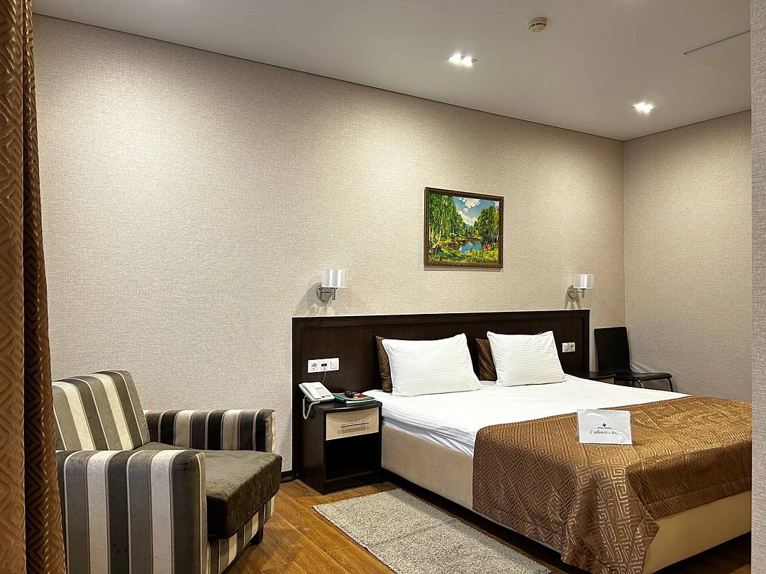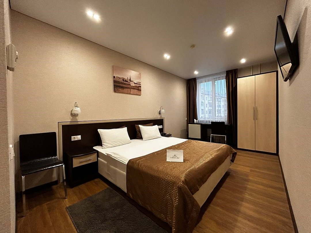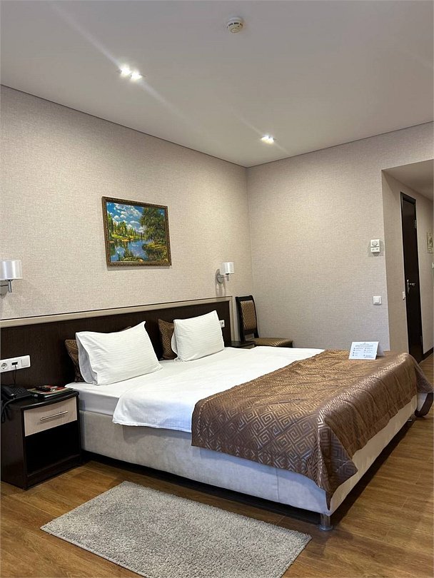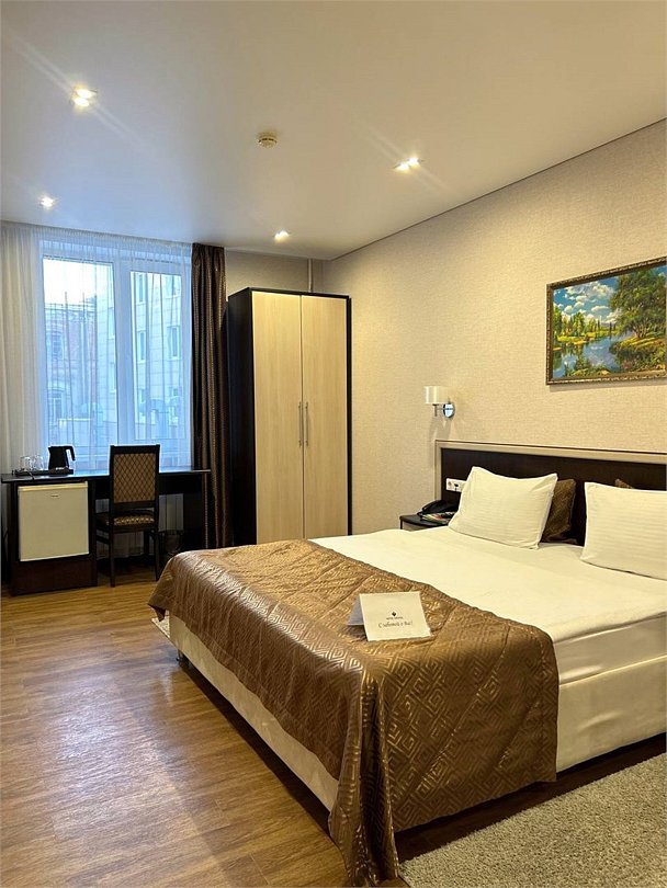 Номер улучшенной категории — это комфортабельный однокомнатный номер площадью 25 кв. м, идеальный для деловых поездок и отдыха в Казани. Основные характеристики номера: - Удобства: Двуспальная кровать с белоснежным постельным бельём, рабочее место, платяной шкаф и сейф — всё для вашего удобства и продуктивности. - Техническое оснащение: Индивидуальная система кондиционирования, ЖК-телевизор, бесплатный Wi-Fi и холодильник — чтобы вы чувствовали себя как дома. - Ванная комната: Современная душевая кабина, фен, косметические принадлежности и тапочки — для полного релакса после дня. Этот номер предлагает комфорт и функциональность для вашего незабываемого отдыха в Казани.Услуги и удобства