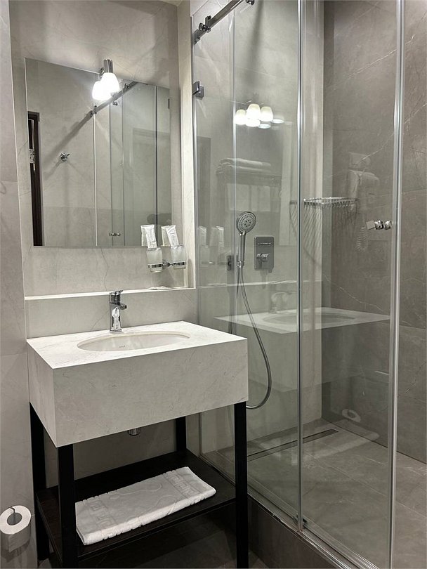 телевизор, два телевизора, спутниковое телевидение, кабельное телевидение, Wi-Fi, телефон, холодильник, кондиционер, система климат-контроля, светильник, настольные лампы, электронные замки, душевая кабина, санузел, банные принадлежности, халаты, банные полотенца, тапочки, косметические средства, двуспальная кровать, кресла, стулья, шкаф для одежды, гардеробная, вешалки, письменный стол, обеденный стол, зеркало, комод, две комнаты, кухня, чайный набор, сейф, чайник, унитаз, раковина, мягкая мебель, косметическое зеркало, обеденная зона, гостиная зона, отопление, душ, вид на город, кулер на этаже, пробковый пол, центральное кондиционирование, общая ванная комната, без питомцевВ гостиничном номере