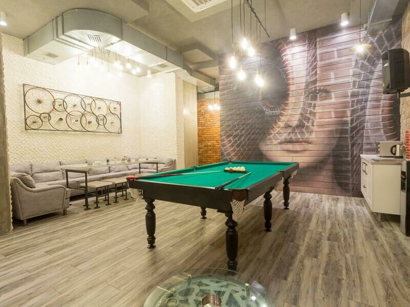 - Номер Лофт: сауна, бассейн, 2 комнаты отдыха, бильярд, профессиональная система караоке, до 12 человек. Цена 1500/2000 ₽/час;