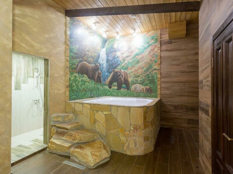 - Номер Альпийский дворик: сауна, джакузи, 2 комнаты отдыха, до 8 человек. Цена 1000/1500 ₽/час;