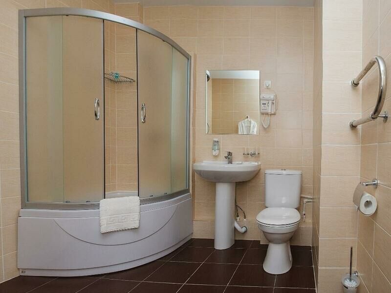 Современное 5-ти этажное здание отеля, оснащенное лифтом, предлагает отдыхающим комфортабельные номера разных категории – Улучшенный, Стандарт, Люкс и Апартаменты, способные единовременно вместить до 165 гостей. Просторные номера, оформленные в светлых тонах, оснащены удобной мебелью, необходимой бытовой техникой – телевизором, холодильником, феном, есть ванная комната с душевой кабинкой, в апартаментах оборудована собственная мини-кухня.