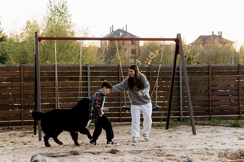 Для детей есть детская площадка с качелями.