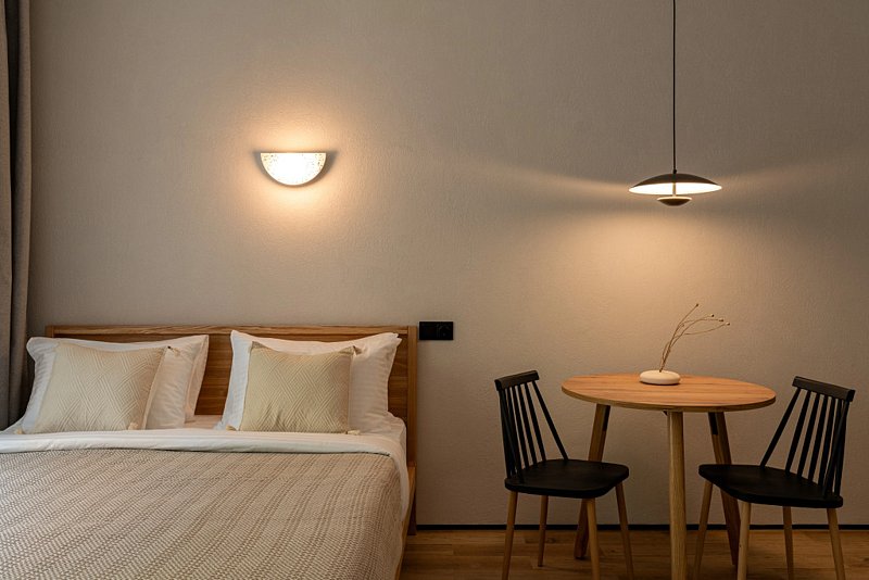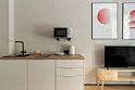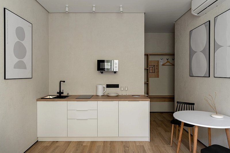 Каждый номер оснащён оборудованной кухней, ванной комнатой, удобной мебелью и зоной для отдыха и сна, в которой также будет удобно работать. Большие окна дают много естественного света.