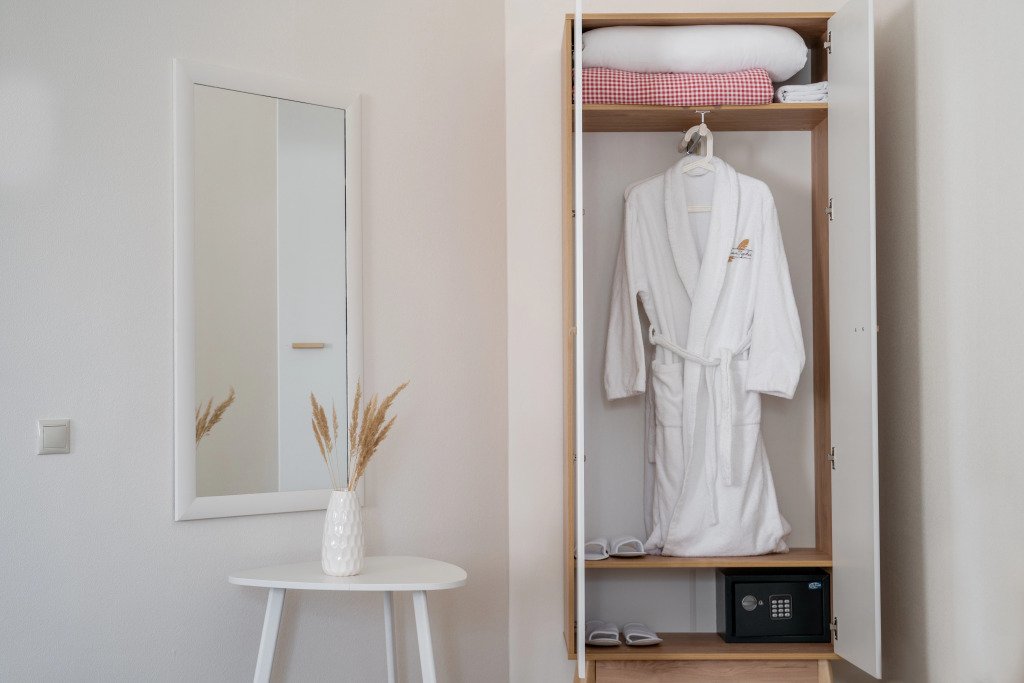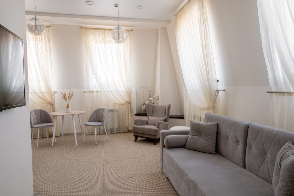В номере вас будут ждать телевизор и халат. Оснащение зависит от выбранной категории номера.