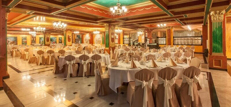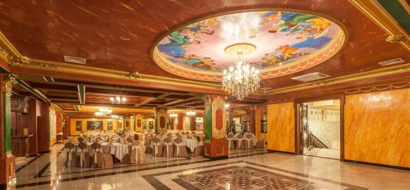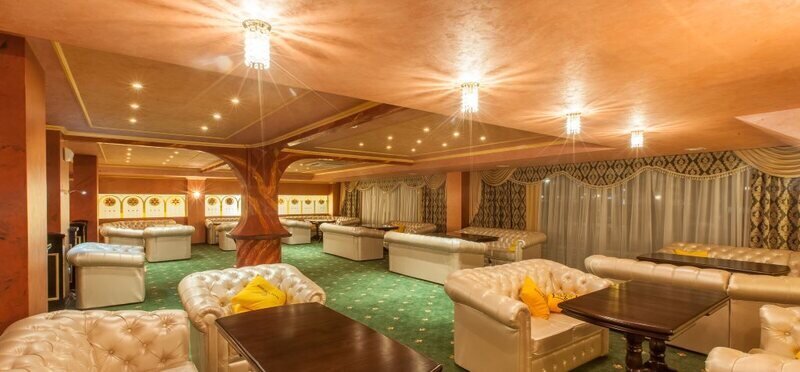 В зале для трапез всегда играет лёгкая, тихая музыка. Такая атмосфера помогает расслабиться и качественно отдохнуть, наслаждаясь любимыми блюдами. Интерьер ресторана оформлен в мягких и приятных тонах. Мебель отличается удобством, что также позволяет организовать максимально тёплый и приятный микроклимат.