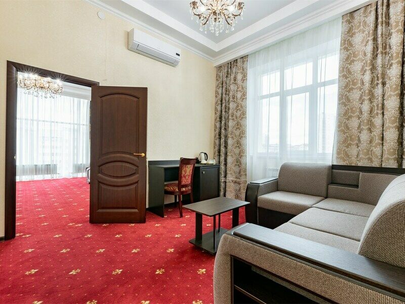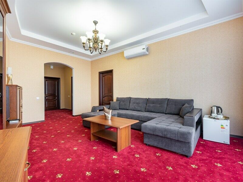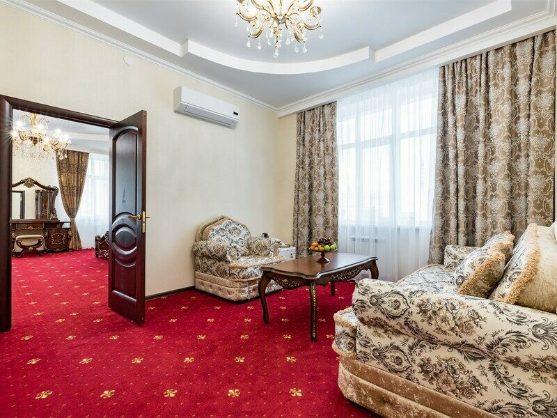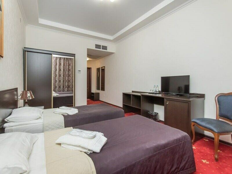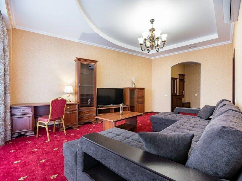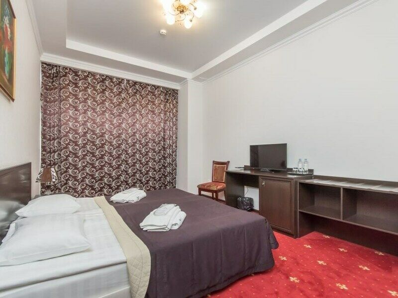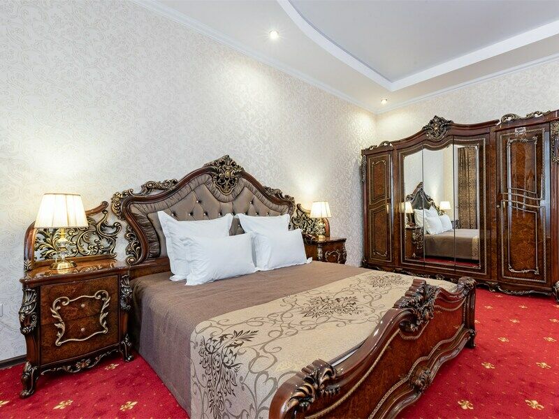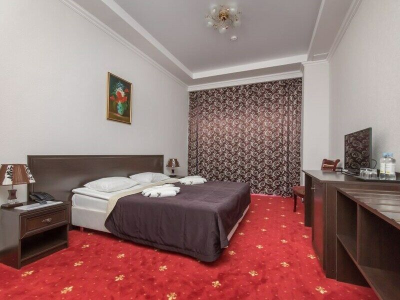 Отель занимает пятиэтажное современное здание, оснащенное лифтом. Внутри — интересный интерьер, в котором классические ноты соединяются с национальными мотивами. Гостей ожидают 73 номера категории Стандарт, Люкс и Комфорт. Все номера хорошо меблированы, оснащены ванной комнатой с душем и косметическими принадлежностями, в Люксах есть джакузи, в номерах Комфорт — панорамные окна.