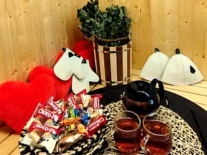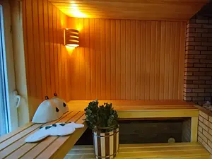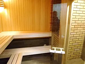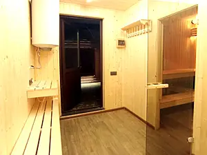 - Парная, обшитая липой, печь с камнями из жадеита и порфирита;