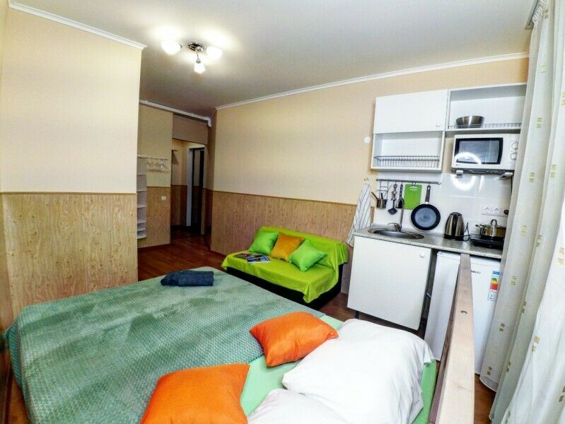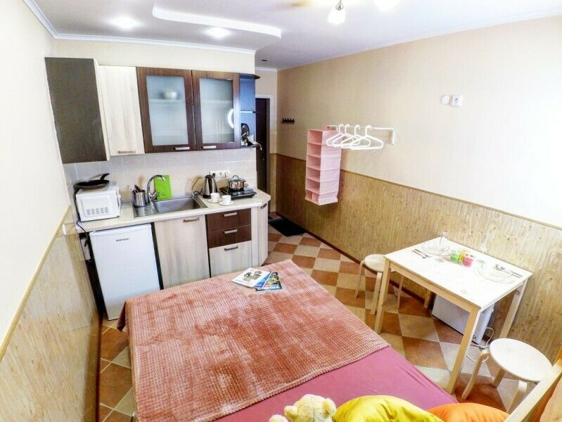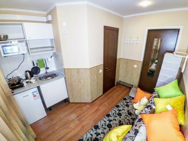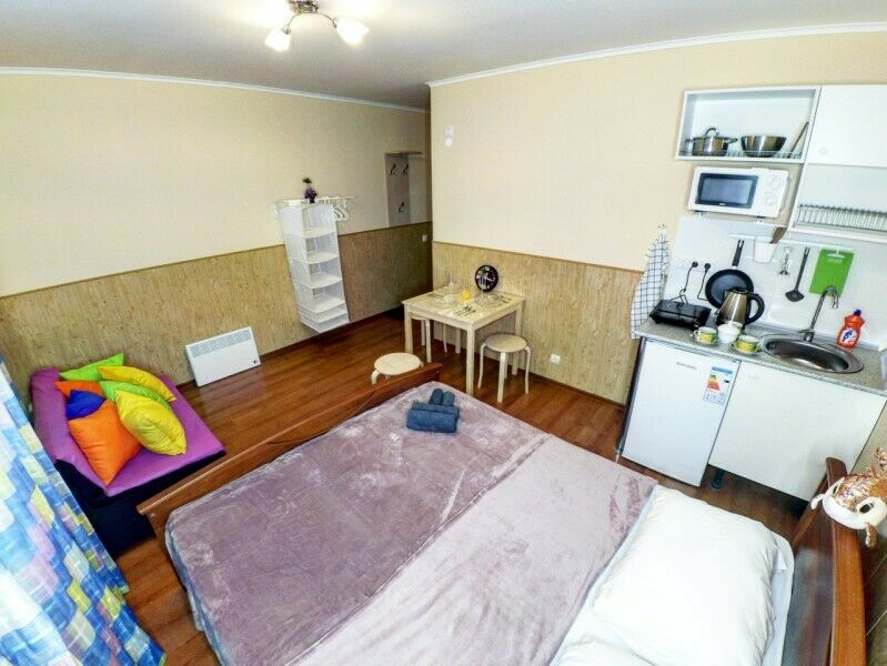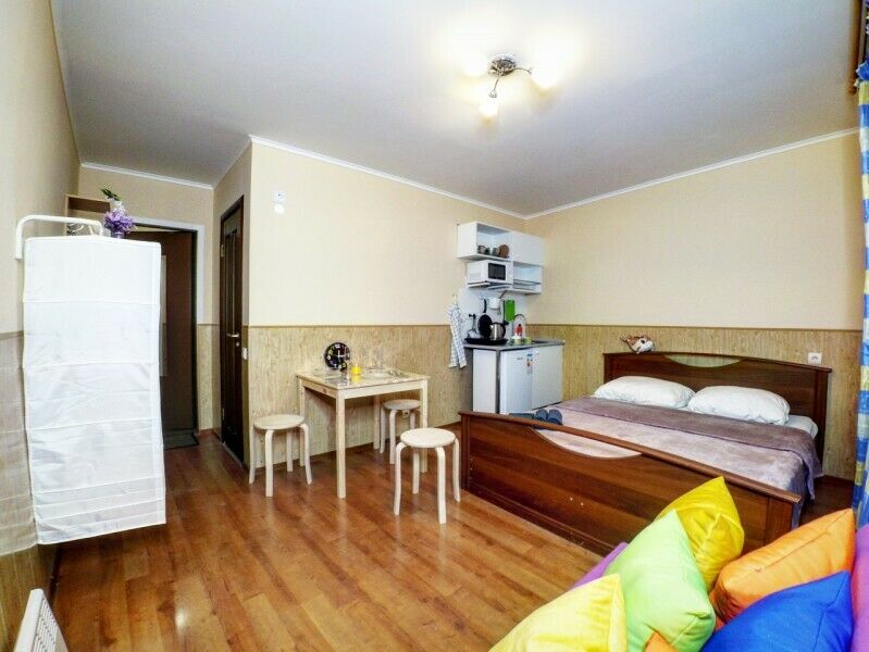 Для Вашего отдыха имеются 6 уютных студий. Студии укомплектованы всем необходимым для комфортного проживания. В студиях имеется вся необходимая мебель, бытовая техника, предоставляются полотенца и постельное белье. Кухня полностью оборудована для приготовления пищи, есть микроволновка, холодильник, плита, посуда. В ванной комнате есть туалетные принадлежности: туалетная бумага, шампунь, мыло.