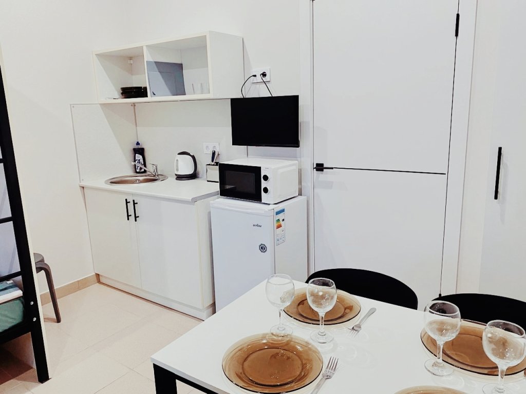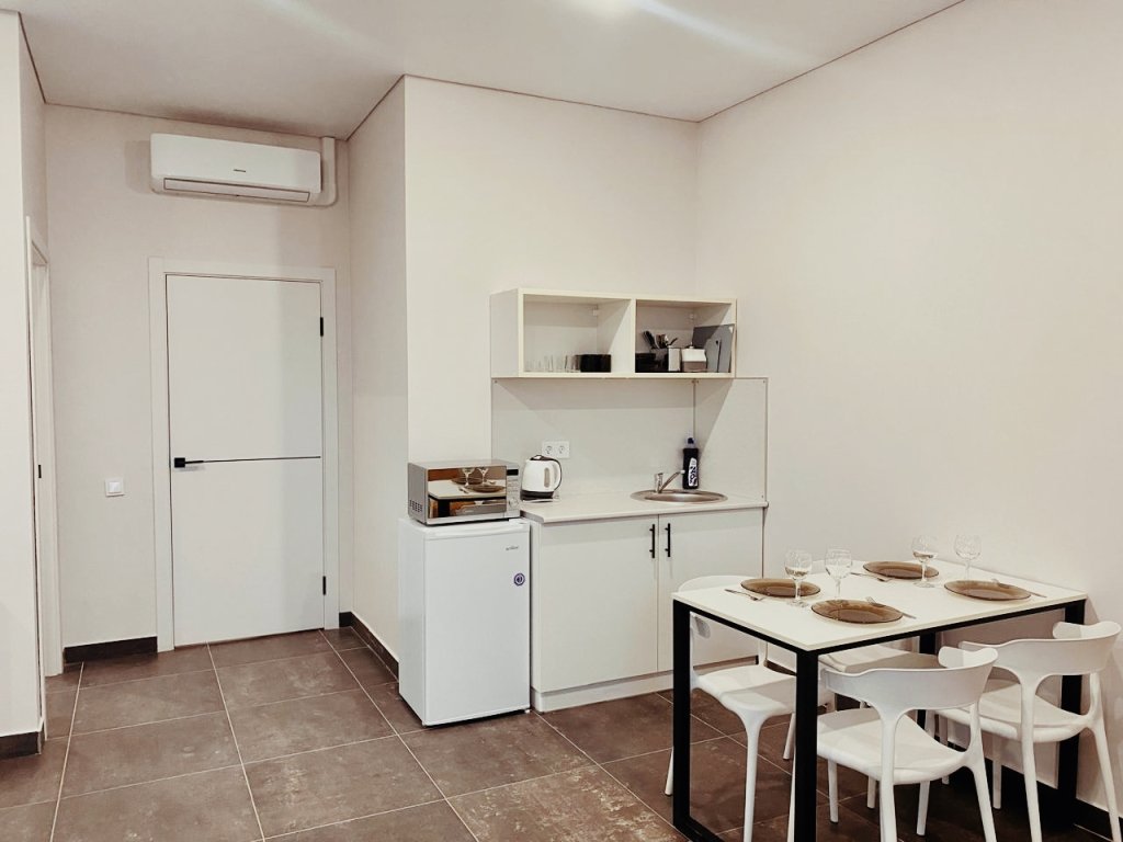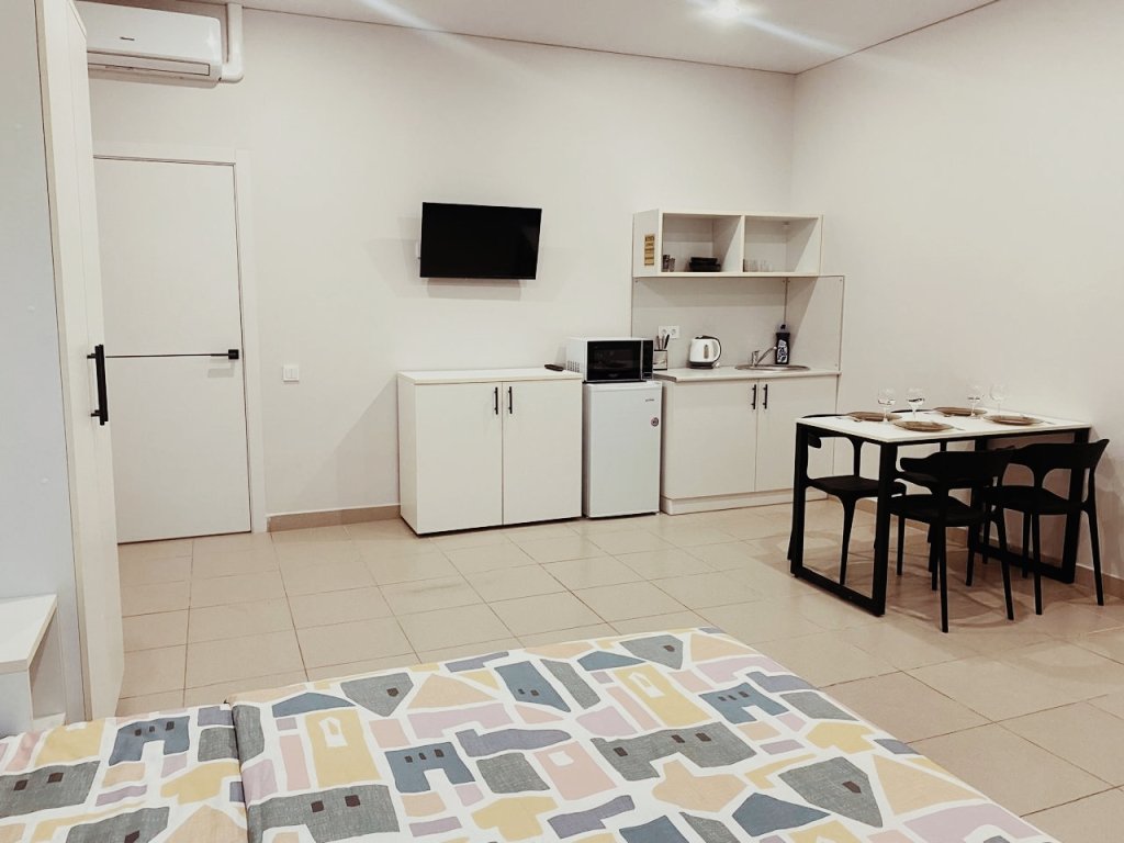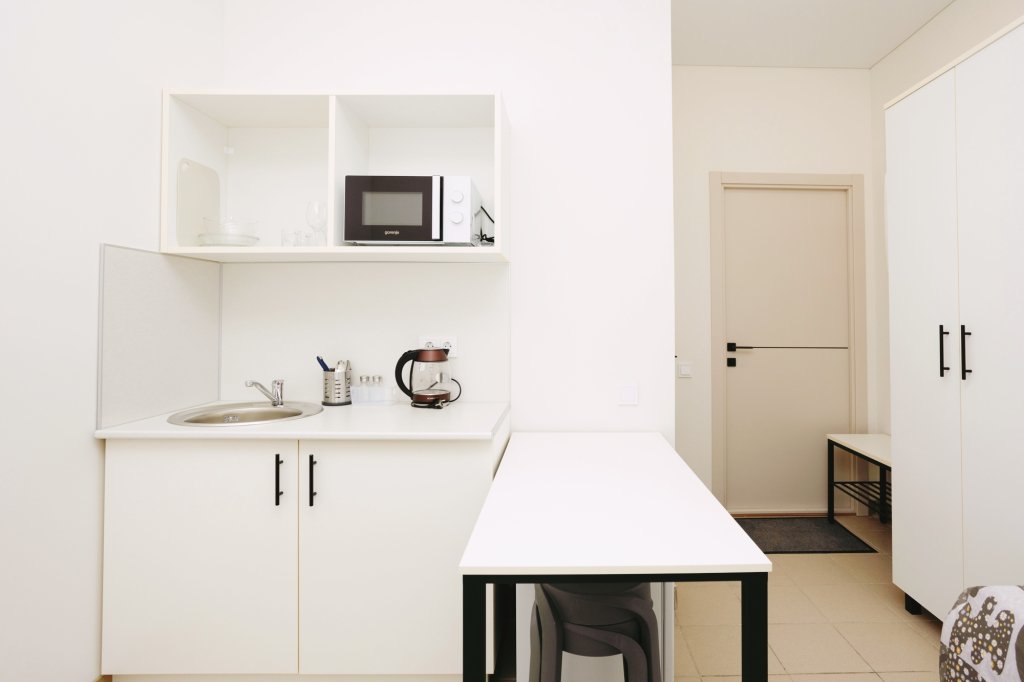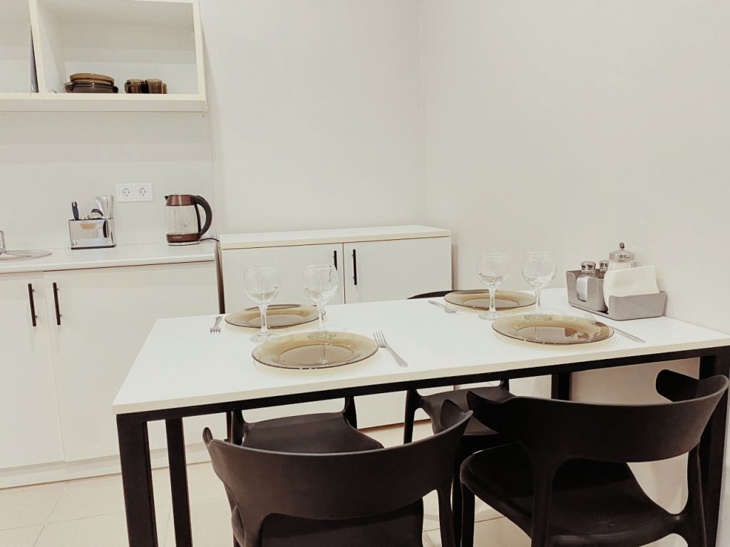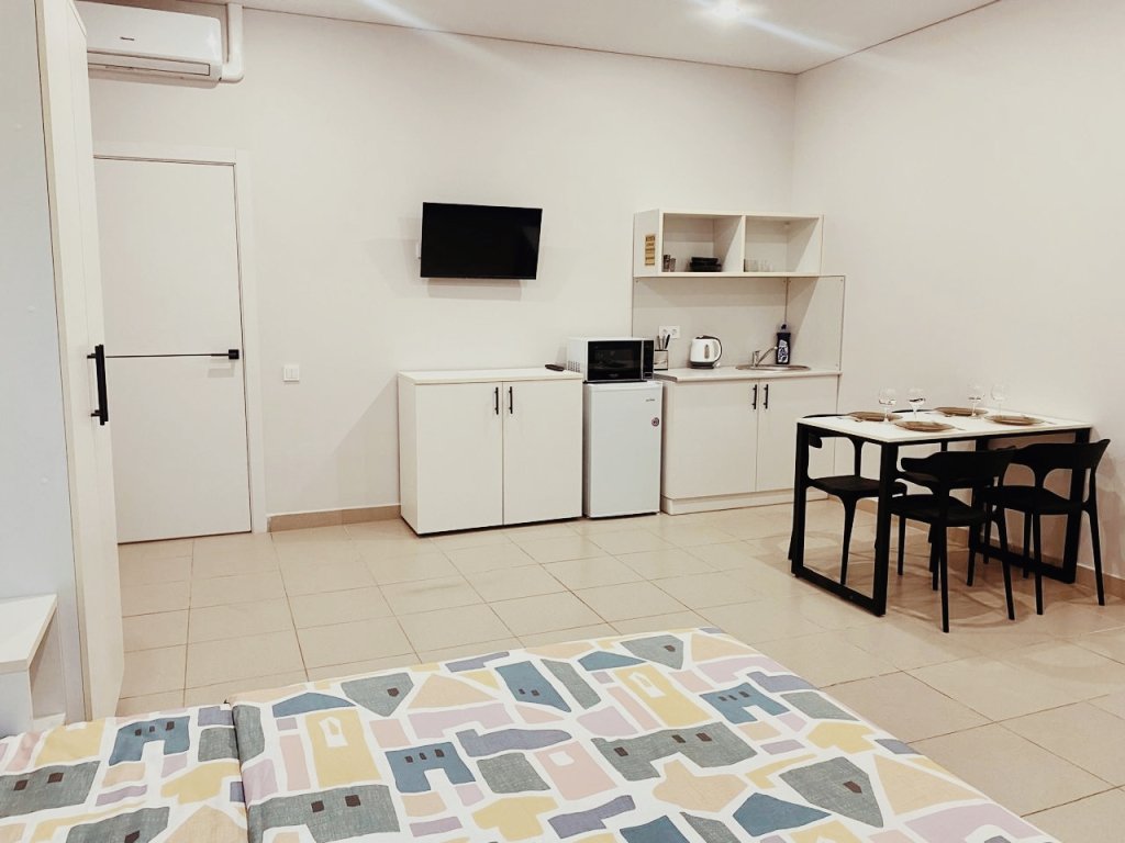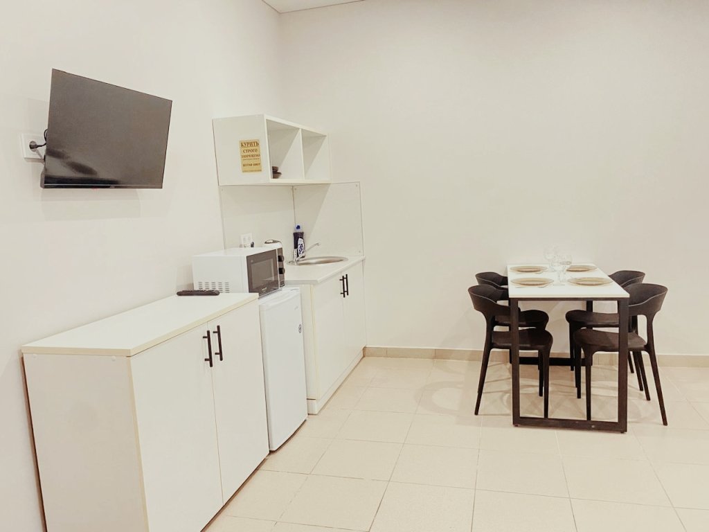 В каждом номере есть мини-кухня, чайник, холодильник и столовые приборы.