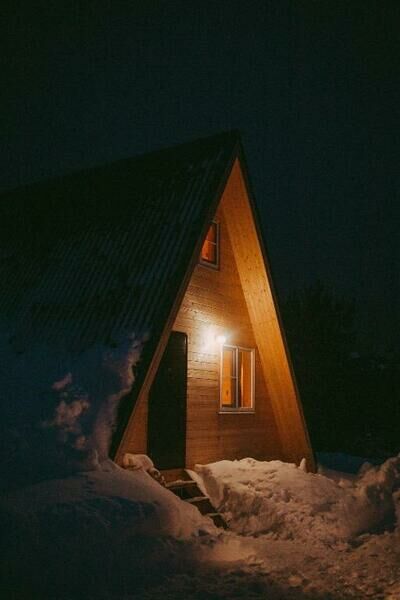 Треугольные дома расположенные в лесу в тишине и уединении.