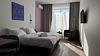Комфорт и Элегантность с локальным колоритом. Стильный Джуниор Сюит просторный номер с двумя односпальными (90*200) кроватями. Номер может комфортно разместить троих гостей при установке дополнительной кровати, что делает его идеальным выбором для небольших семей или групп друзей. Высокие потолки и кондиционер обеспечивают комфорт. Уютная зона с креслом и журнальным столиком позволяет насладиться моментами расслабления во время пребывания в городе. Тропический душ, ортопедические матрасы, Светонепроницаемые шторы— идеальное решение для полноценного отдыха после дня осмотра Казани. Рабочий стол добавляет функциональности.Услуги и удобства