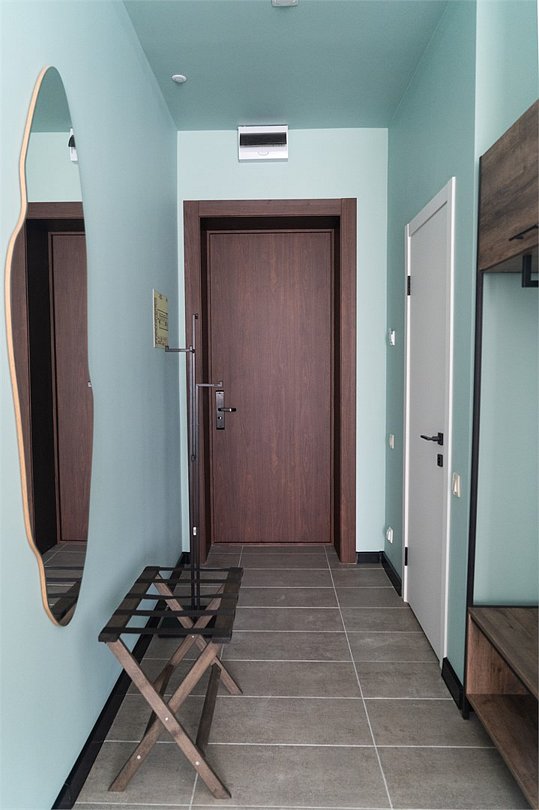 телевизор, спутниковое телевидение, Wi-Fi, интернет, кондиционер, светильник, фен, электронные замки, санузел, теплый пол, банные полотенца, тапочки, косметические средства, односпальная кровать, шкаф для одежды, вешалки, письменный стол, багажная тумба, зеркало, пуфики, чайный набор, чайник, унитаз, раковина, душ, плиточное покрытие, ламинат, высокие потолки, стаканы, стул, стол, туалетные средства, туалет, гостиничная парфюмерия, пуфик, рабочий стол, фумигатор, уборка номера, вешалки-плечики, частный двор, затемняющая штора, зеркало в полный рост, без питомцев, тропический душВ гостиничном номере