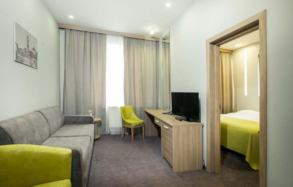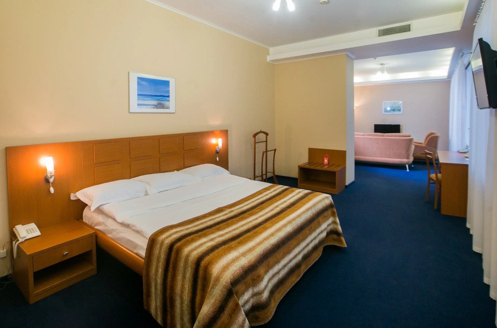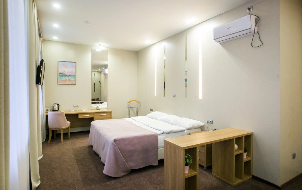 В номере гостей ждут телевизор, мини-бар, халат и тапочки. Перечисленные услуги есть не во всех номерах.
