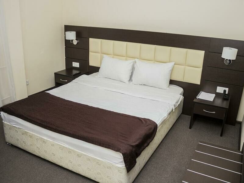 3-х этажное здание отеля расположено на пересечении главных пешеходной улицы города – Баумана с улицей Кави Наджми. Гостей ожидают номера категории Комфорт, Улучшенный, Семейный и Стандарт, укомплектованные самыми необходимыми предметами мебельного гарнитура и современной техникой – телевизором, кондиционером, холодильником, электрочайником. В ванных комнатах есть косметические принадлежности для гостей.