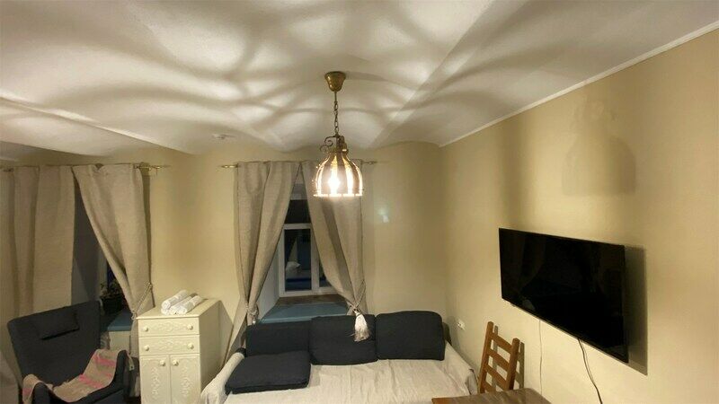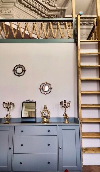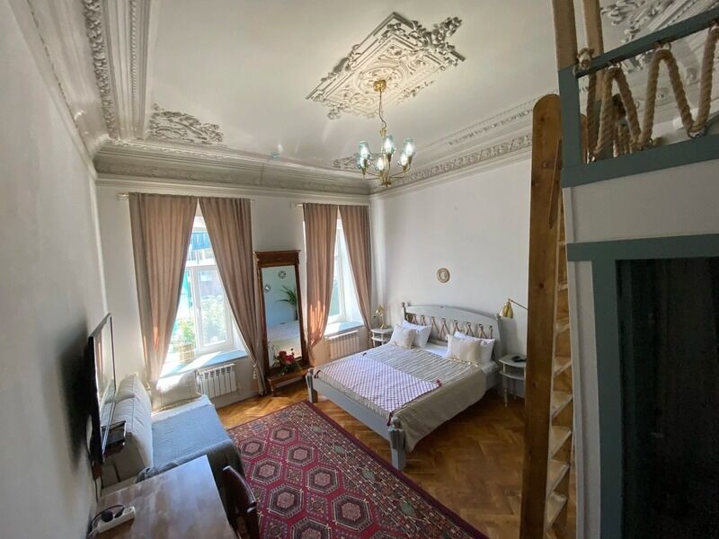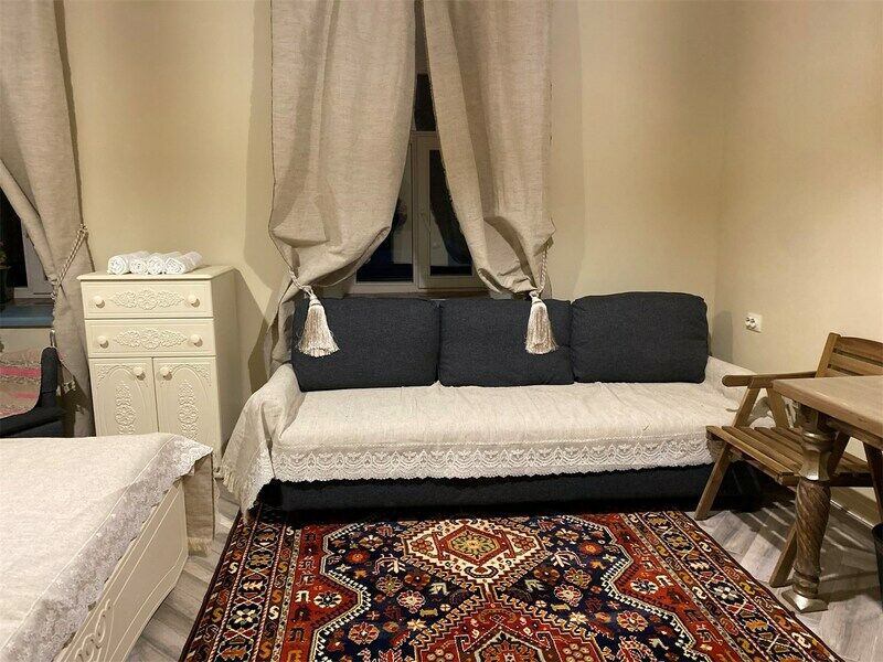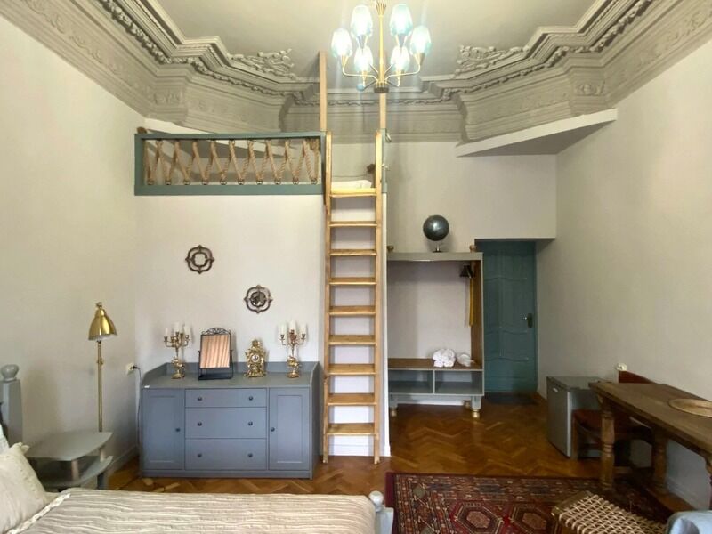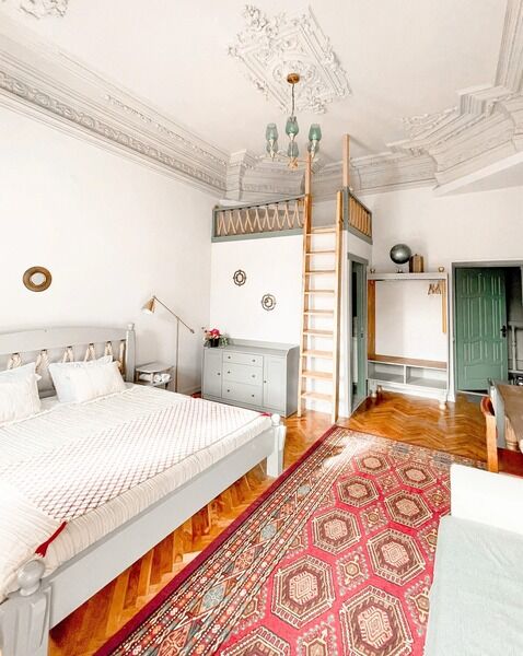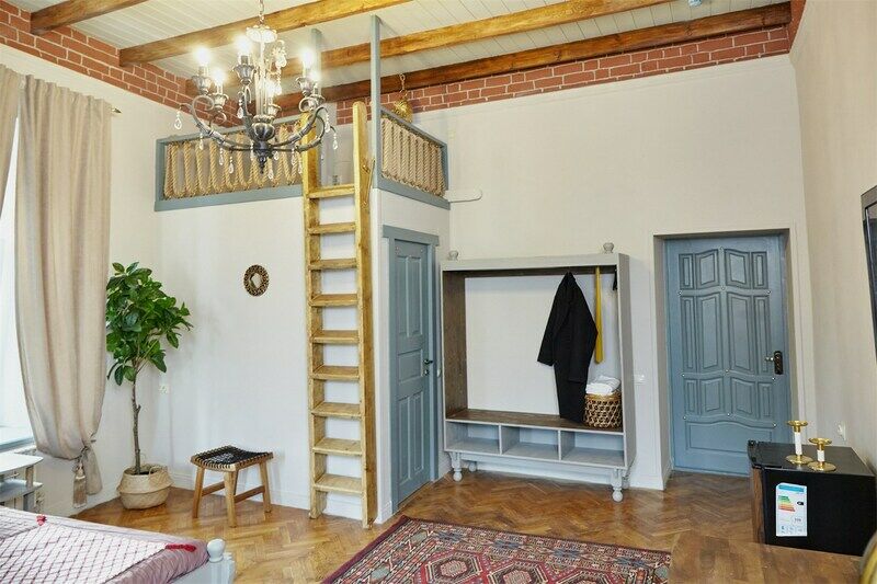 Однокомнатный номер с высоким потолком подходит для от 3- 5 человек, можно разместиться с детьми . Как детям так и взрослым можно разместиться на антресоли ( по лестнице ) на односпальном матрасе - футон , шииккибаттон и наблюдать на шикарное пространство номера с высока . Также можно постелить еще один матрас как дополнительное место).