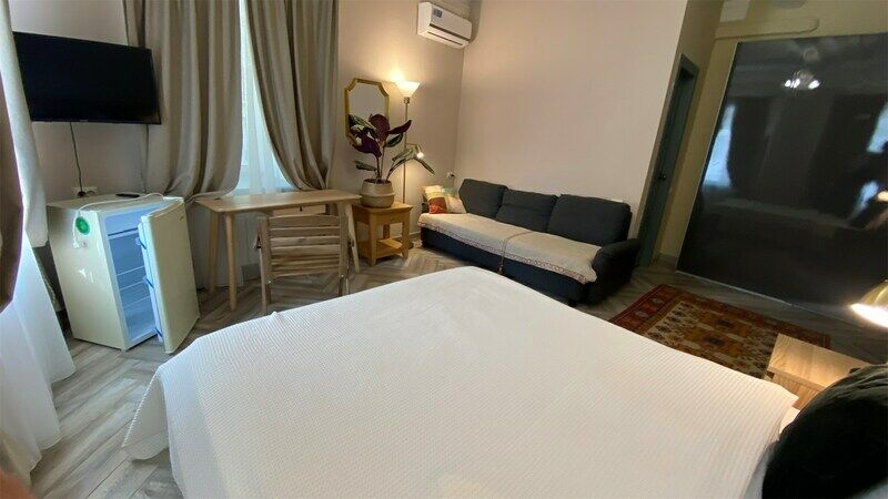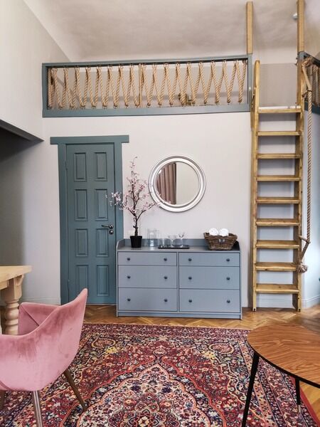 Номер с изюминкой , стильный ретро - холодильник , зеркало раритет , мебель ручной работы.