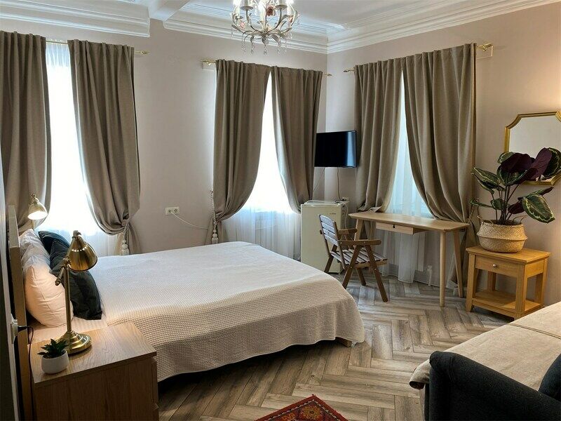 Путешествие в одиночкуОдин из лучших атмосферных отелей в купеческом доме в историческом центреЛюбезные администраторы, в течении 7 дней побщалась со всеми! Круглосуточный рецепшн, хорошая уборка. Питание: у меня без завтрака, номер в цоколе - своя мини кухня с кулером, чайником микроволновкой и даже хлопья, чай, кофе, сахар. Есть услуга с завтраком- в соседнем кафе. Но я из отеля уходила до завтрака, поэтому миникухня мне очень подходила. Тихий район Татарской Слободы и озера Кабан. До всех туристических мест 2 остановки транспорта, или пешком 1,8 км. У отеля много разноплановых номеров. Мой же номер был самый экономный по деньгам, номер новый, с января . Есть нюанс- туалетная комната отдельно от номера. Т.е. одеть отельный белый халат, пройти 3 метра до кухни и здесь душевая комната. Белые полотенца, халат, тапочки, фен, тв , вай фай. Все отлично. Рекомендую своим знакомым однозначно.