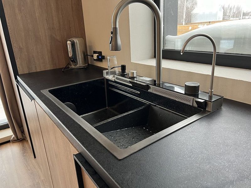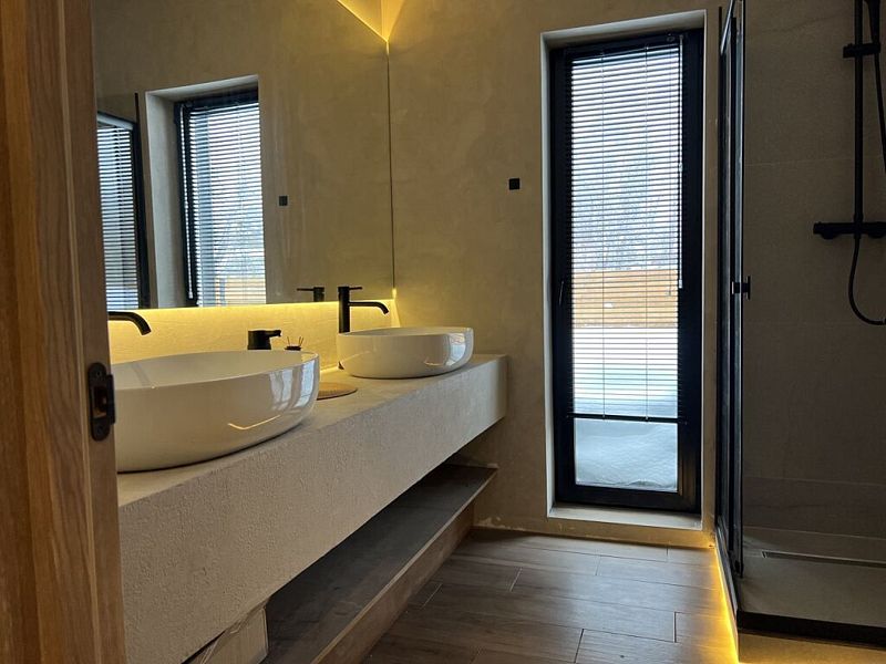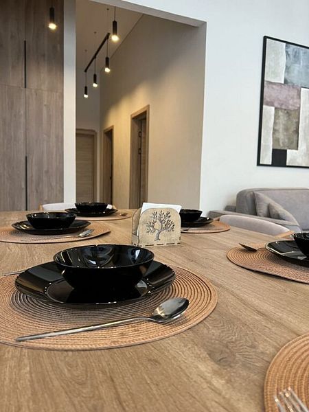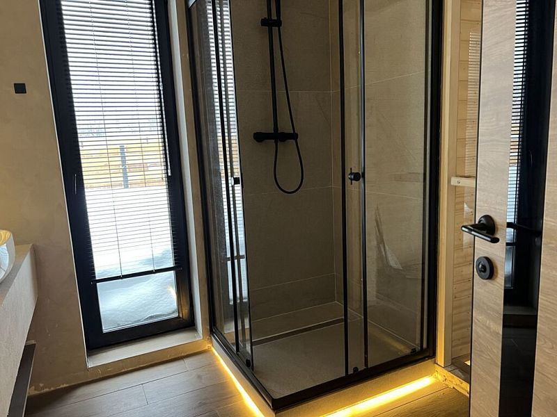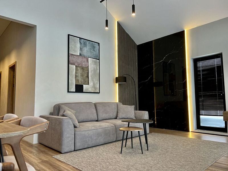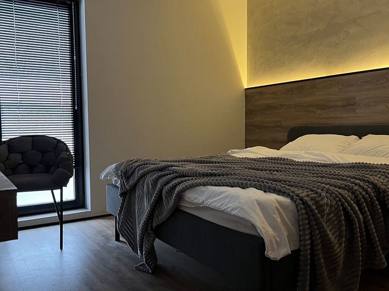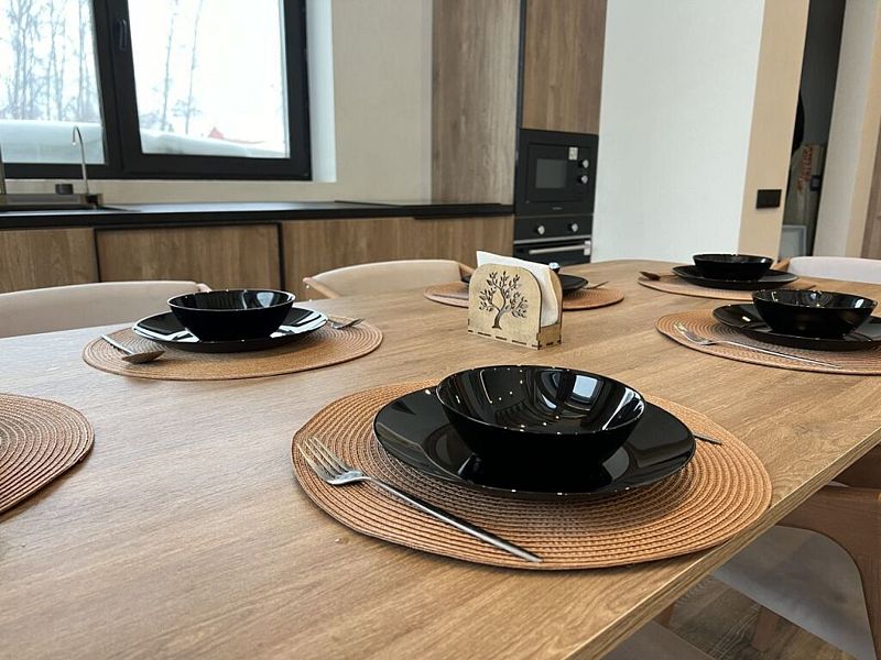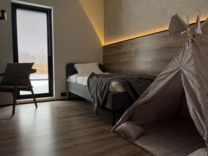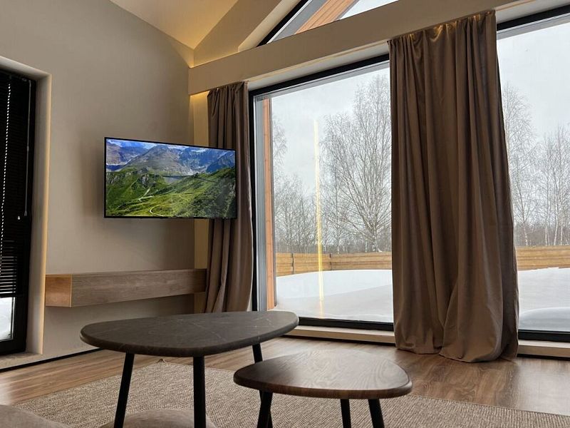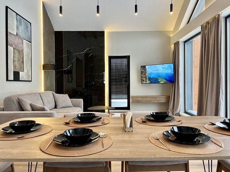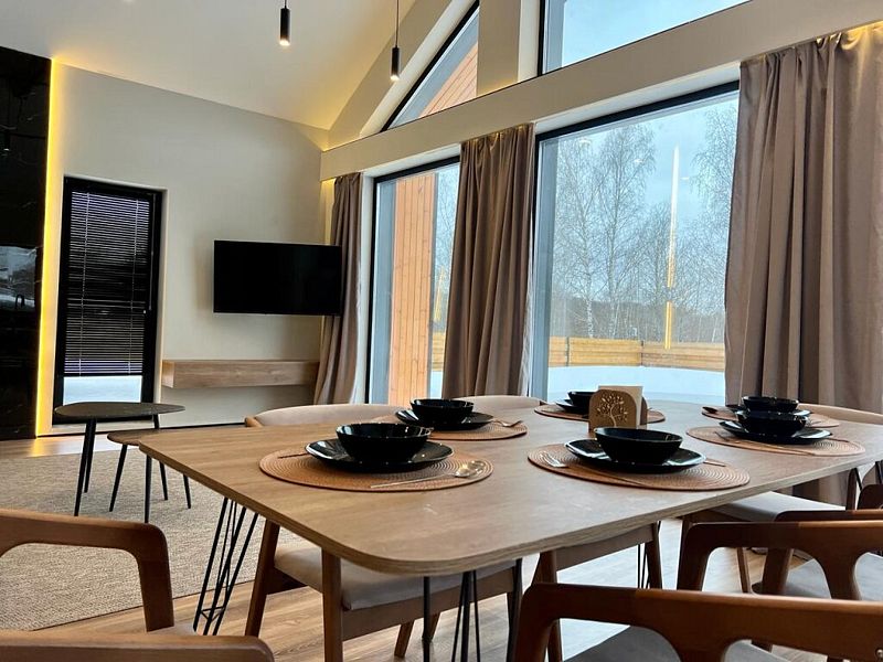 Роскошный дом 100 м2 оформлен в дизайнерском стиле и оснащён всем необходимым для комфортного отдыха: спальнями, кухней-гостиной сауной, телевизором и прочими удобствами. Благодаря панорамным окнам вы сможете любоваться закатами.