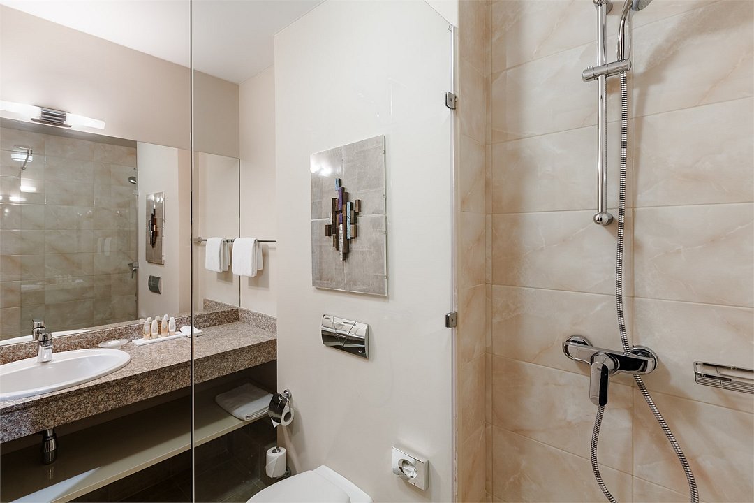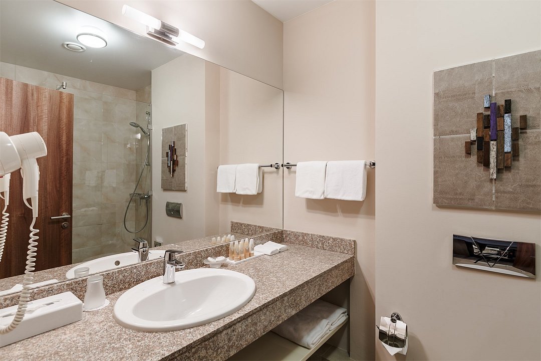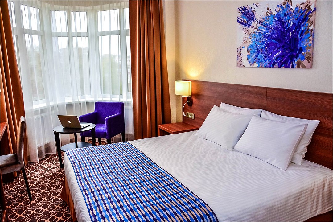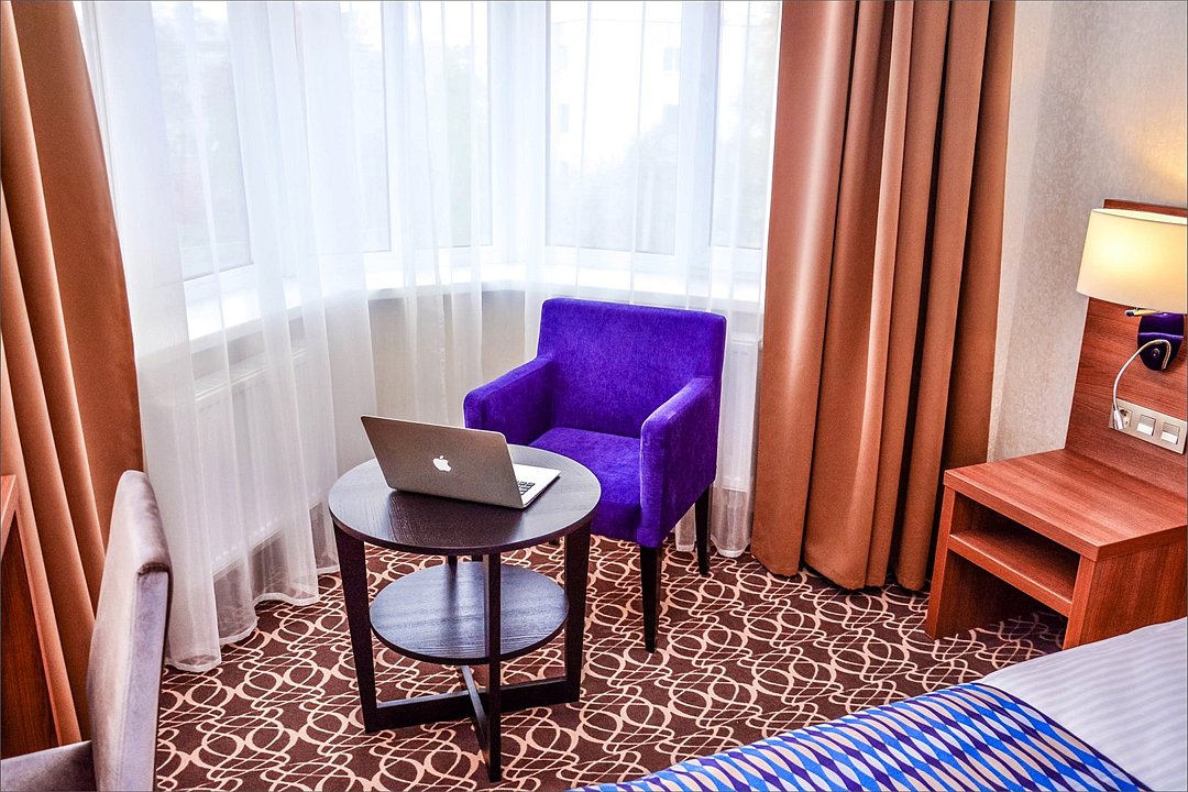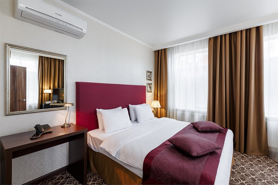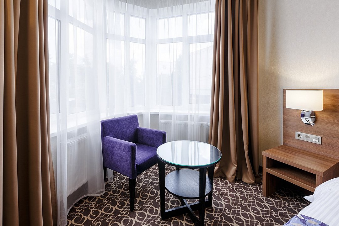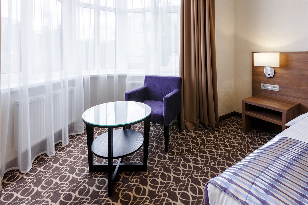 Наши номера категории «Бизнес» созданы для Вашего комфортного отдыха.Номер оснащен уютной зоной отдыха с журнальным столом с удобным мягким креслом. Наличие рабочей зоны отлично подходит для бизнес гостей, а неограниченный доступ wi-fi позволит быстро решить любые вопросы. Качественная косметика и постельное белье, а так же набор пушистых банных полотенец сделают Ваш отдых комфортным.Мы продумали пространство номера до мельчайших деталей , чтобы Вы почувствовали себя как дома.Услуги и удобства