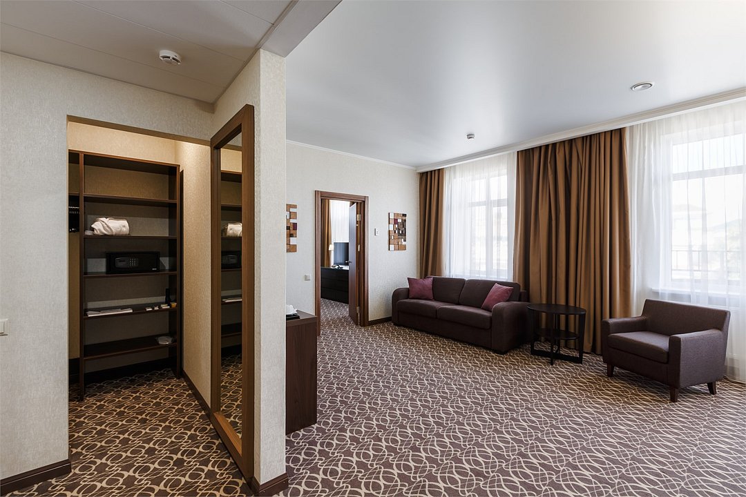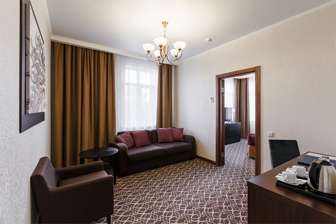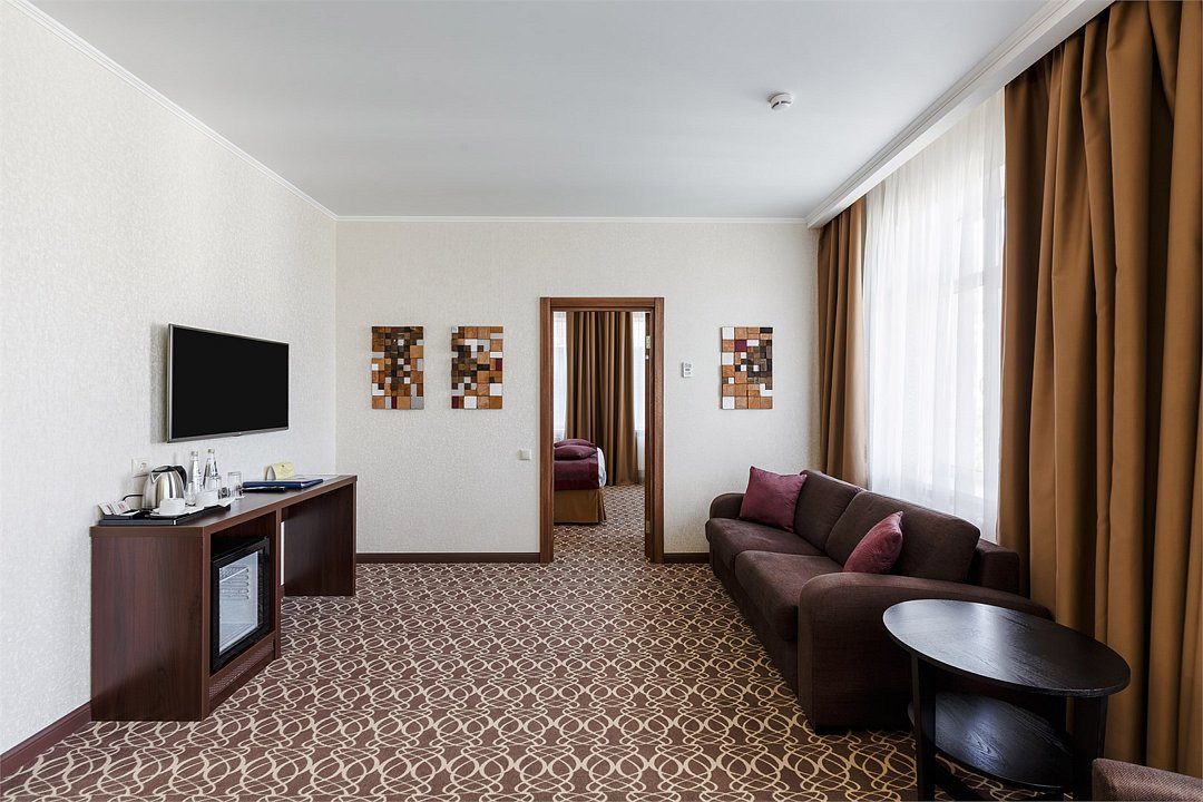 Насладитесь уютом после насыщенного дня. Мы старались сделать Ваше проживание в нашем номере джуниор люкс максимально удобным и поэтому разделили спальное пространство и гостиную. В этом номере для всего найдется свое особое пространство: будь то просмотр телевизора, неспешное чаепитие или работа с документами. Белоснежное постельное белье, просторная элегантная ванная комната и качественная косметика - все учтено, чтобы сделать Ваше пребывание комфортным и приятным.Услуги и удобства