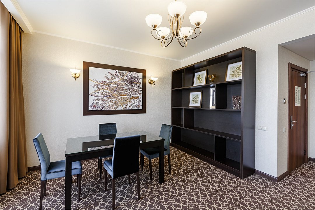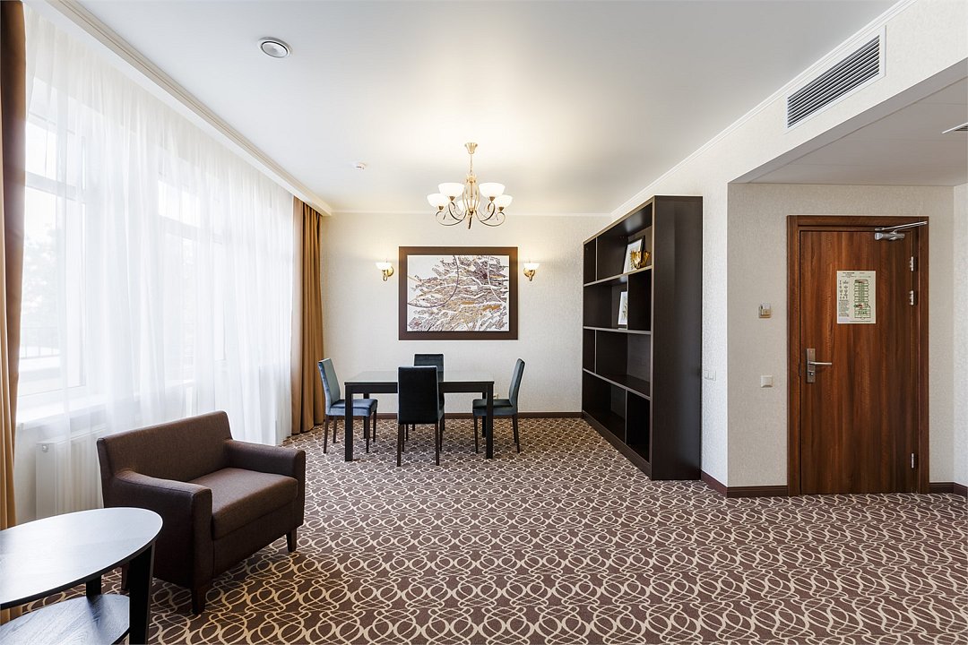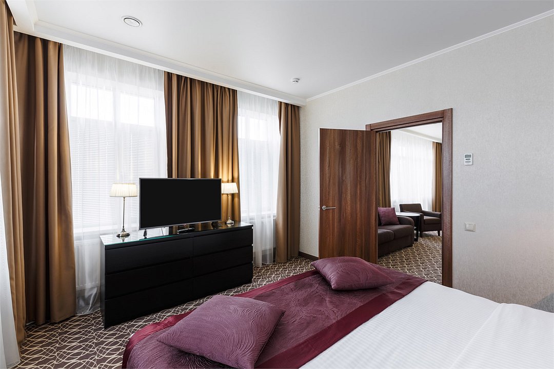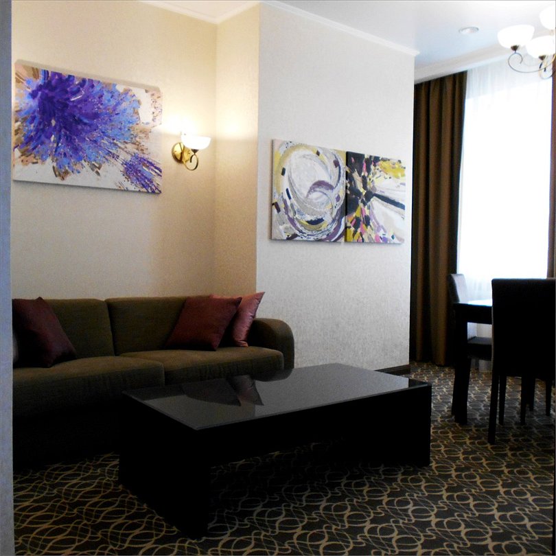 Насладитесь уютом после насыщенного дня. Мы старались сделать Ваше проживание в нашем номере люкс максимально удобным и поэтому разделили спальное пространство и гостиную. В этом номере для всего найдется свое особое пространство: будь то просмотр телевизора, неспешное чаепитие или работа с документами. Белоснежное постельное белье, просторная элегантная ванная комната и качественная косметика - все учтено, чтобы сделать Ваше пребывание комфортным и приятным.Услуги и удобства