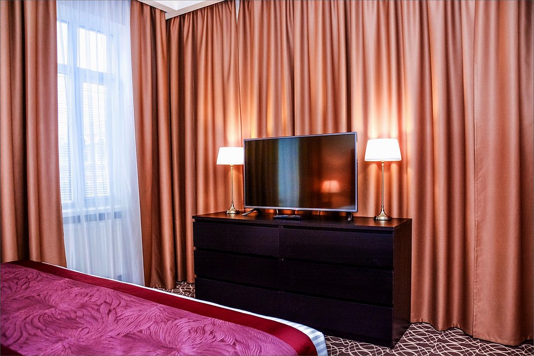 телевизор, два телевизора, спутниковое телевидение, Wi-Fi, телефон, кондиционер, система климат-контроля, светильник, настольные лампы, фен, электронные замки, утюг, ванная комната, санузел, банные принадлежности, халаты, банные полотенца, тапочки, гигиенические средства, косметические средства, двуспальная кровать, гладильная доска, ортопедический матрас, диван, тумбы, стулья, гардеробная, вешалки, журнальный столик, письменный стол, багажная тумба, зеркало, комод, две комнаты, мини-бар, письменные принадлежности, чайный набор, обслуживание номеров, информационная карта, меню, сейф, минеральная вода, чайник, унитаз, раковина, мягкая мебель, косметическое зеркало, питьевая вода, гостиная зона, ковровое покрытие, отопление, душ, вид на город, кресло, стаканы, туалетный столик, кофейный столик, стул, стол, тумба, туалетный столик, туалетные средства, туалет, раскладной диван, внутренний телефон, телевизор с плоским экраном, мини-холодильникВ номере