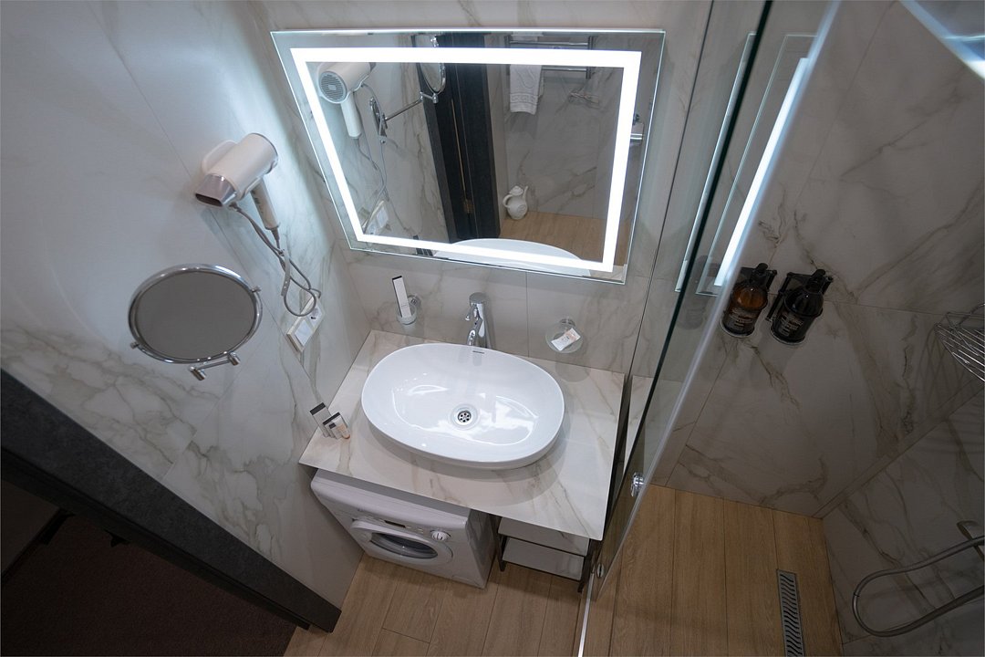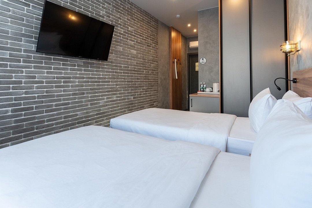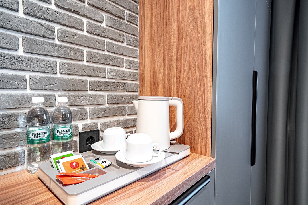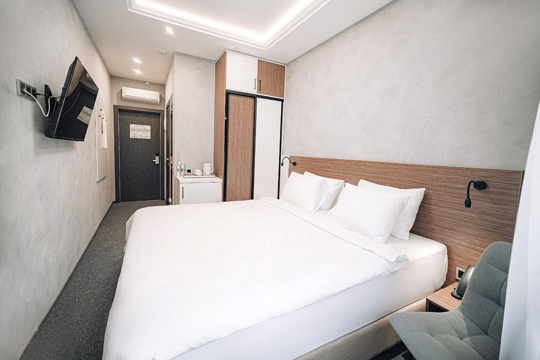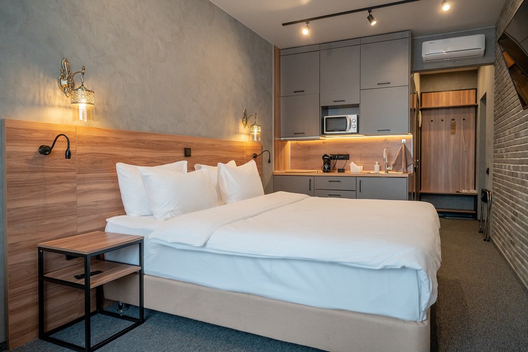 Просторный однокомнатный номер площадью 15 метров, с двумя раздельными кроватями, оснащенный всем необходимым для комфортной жизни. Отлично подходит для двухместного проживания.Стандарт с кухней
