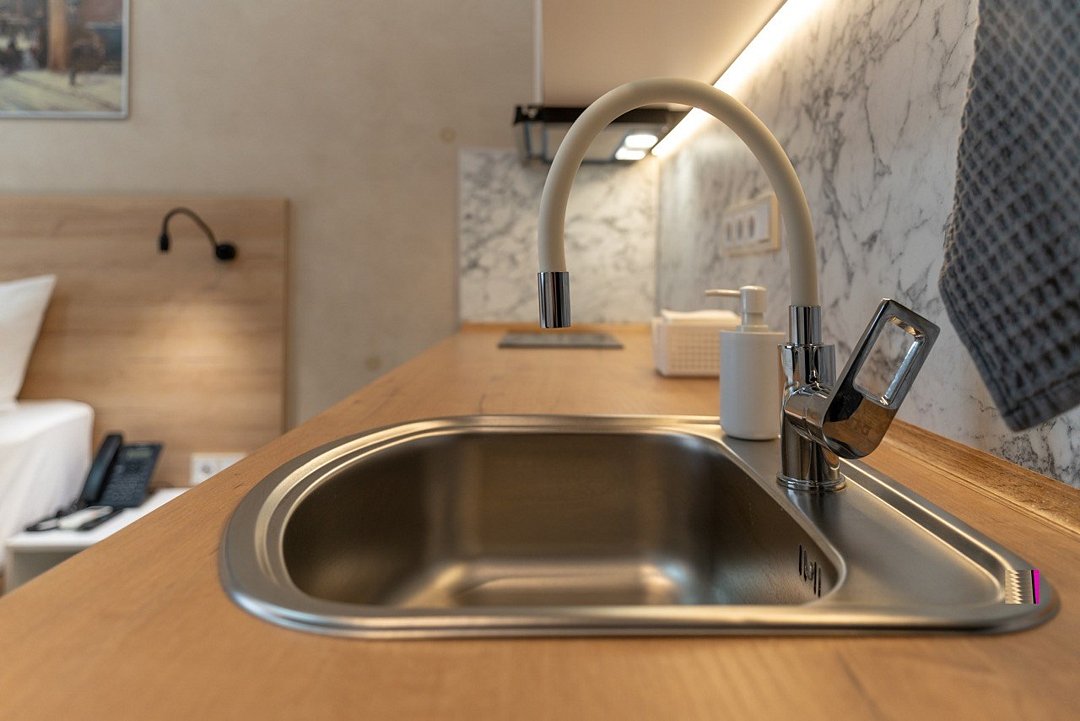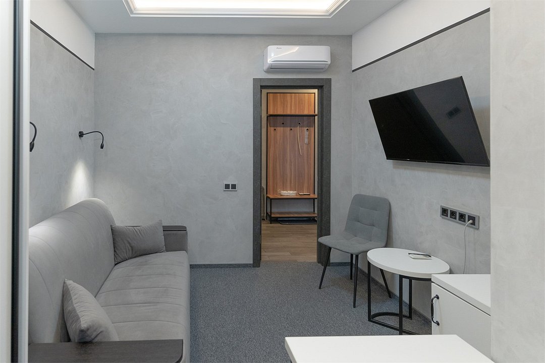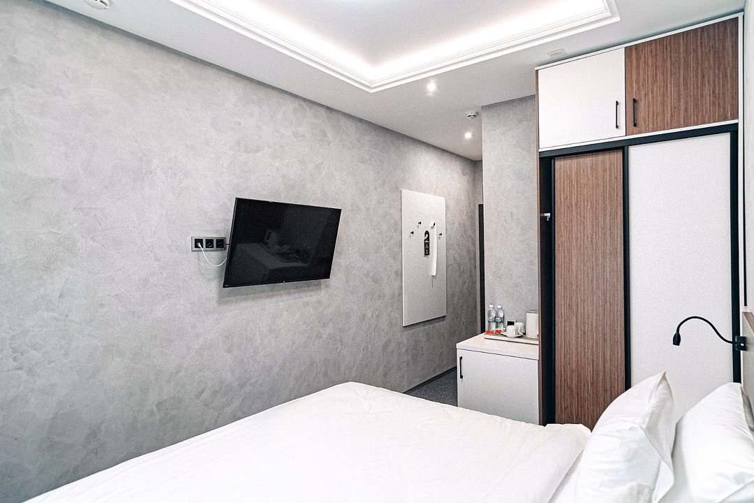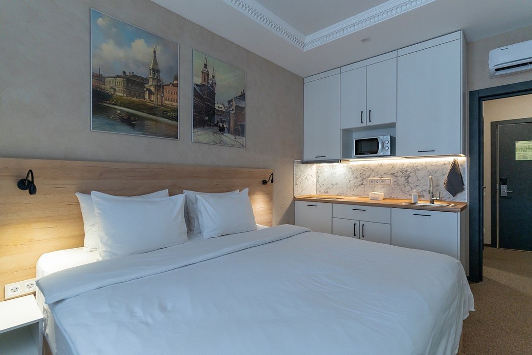 Большой однокомнатный номер площадью 20 метров, оснащенный кухней и всем необходимым для комфортного проживания.Улучшенный стандарт с кухней