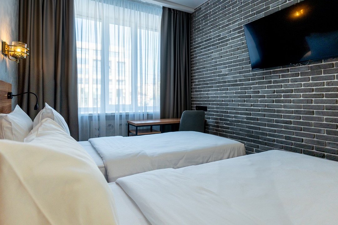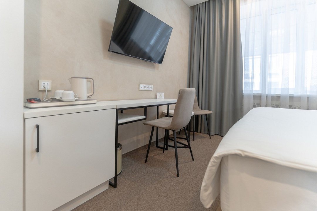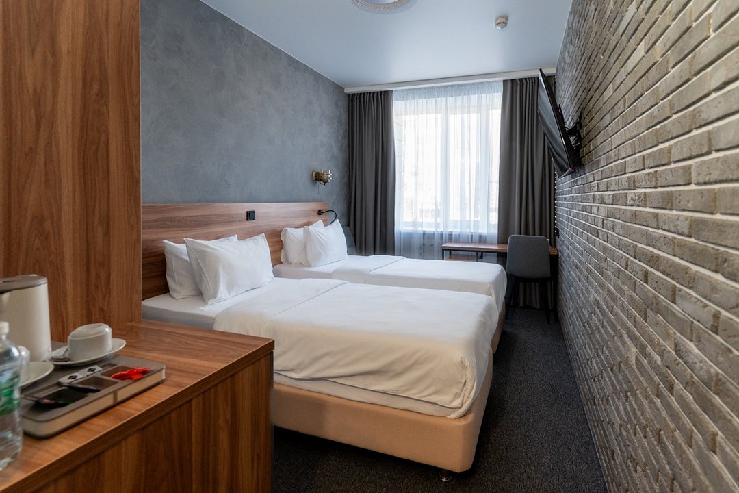 Просторный однокомнатный номер площадью 15 метров, оснащенный всем необходимым для комфортной жизни. Отлично подходит для одно- или двухместного проживания.Стандарт с раздельными кроватями