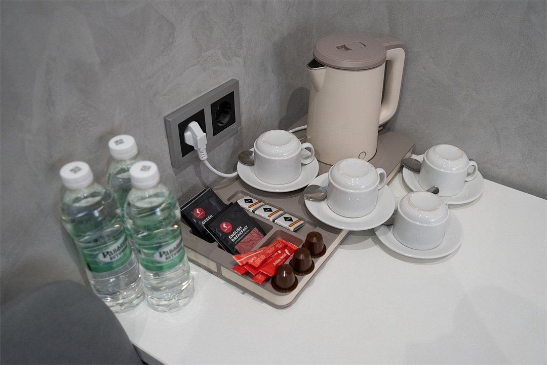 На ресепшене вы можете взять контакты ресторанов с быстрой доставкой и заказать еду прямо в номер. На выбор блюда итальянской, паназиатской или японской кухонь.