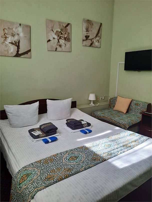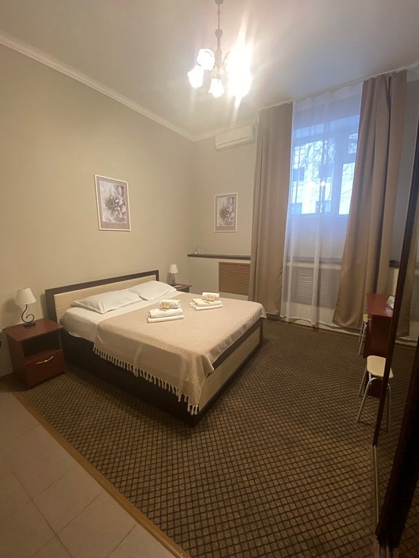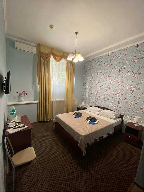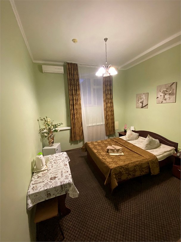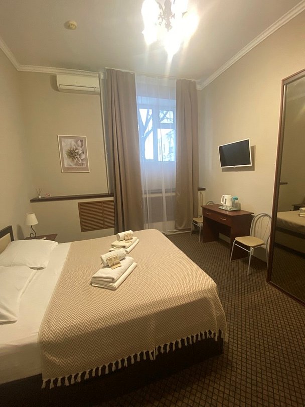 В номере есть все необходимое двухспальная кровать шкаф зеркало во весь рост душ в кафельной плитке Кондиционер Санузел Телевизор Wi-Fi Постельное белье, полотенца Уборка номера входит в стоимость чайник Шампунь/гель для душа тапочки Фен по запросу.Услуги и удобства