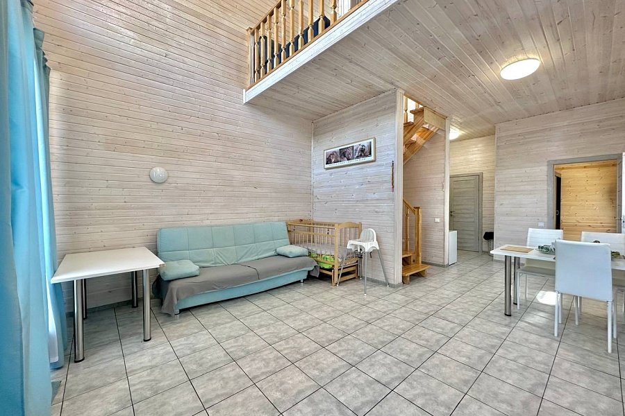 - 2 спальни на втором этаже (3 кровати и раскладной диван).