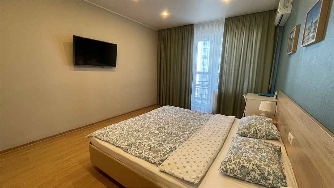 Апартаменты с 2 большими изолированными спальнями и кухней. Прекрасный вид на реку Казанку и аквапарк "Ривьера". В каждой из спален можем застелить как большую двуспальную кровать, так и 2 раздельные. Комфортный сон обеспечат ортопедические матрасы универсальной жесткости. На кухне предусмотрена все необходимая посуда и техника для разогрева и приготовления еды: варочная панель, микроволновка, чайник, большой холодильник, комплект посуды и столовых приборов. В ванной комнате предусмотрены комплекты полотенец, фен, стиральная машина, пенка для рук и универсальный гель для душа и шампунь. В каждой комнате установлен большой плазменный телевизор с цифровым телевидением. Есть Wi-Fi. Доплата за проживание с питомцем составляет 1500 рублей за весь период. Фактический адрес: ул. Алексея Козина д.3а, ул. Сибгата Хакима д.50, ЖК "Современник"Услуги и удобства