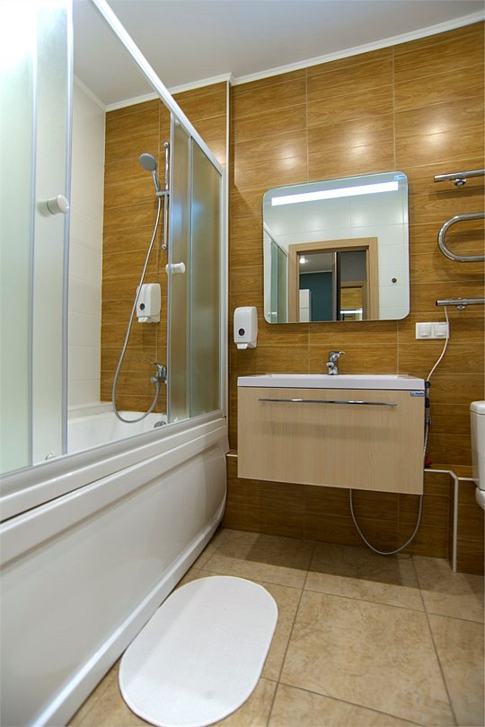 Просторные и стильные апартаменты с объединенной кухней-гостиной и отдельной спальной комнатой. В номере предусмотрен Wi-Fi, 2 плазменных телевизора, цифровое кабельное телевидение. В спальне можем подготовить как большую двуспальную кровать, так и 2 раздельные. Комфортный сон будет обеспечен благодаря ортопедическим матрасам средней жесткости. В гостиной большой угловой диван, который раскладывается в полноценное спальное место. Для него предусмотрен дополнительный тонкий матрас. Кухня оснащена всей необходимой техникой, посудой и столовыми приборами: холодильником, варочной панелью, микроволновой печью, электрическим чайником, комплект посуды для приготовления еды. Ванная комната объединена с туалетом. Предусмотрены теплые полы, подготовлен комплект свежих полотенец на 4 персоны. Универсальный гель для душа и шампунь, пенка для рук. Установлена стиральная машина и бойлер. В прихожей большой шкаф-купе для хранения всех личных вещей. Доплата за проживание с питомцем составляет 1500 рублей за весь период. Фактический адрес: ул.Сибгата Хакима д.40, ЖК "Современник"Услуги и удобства