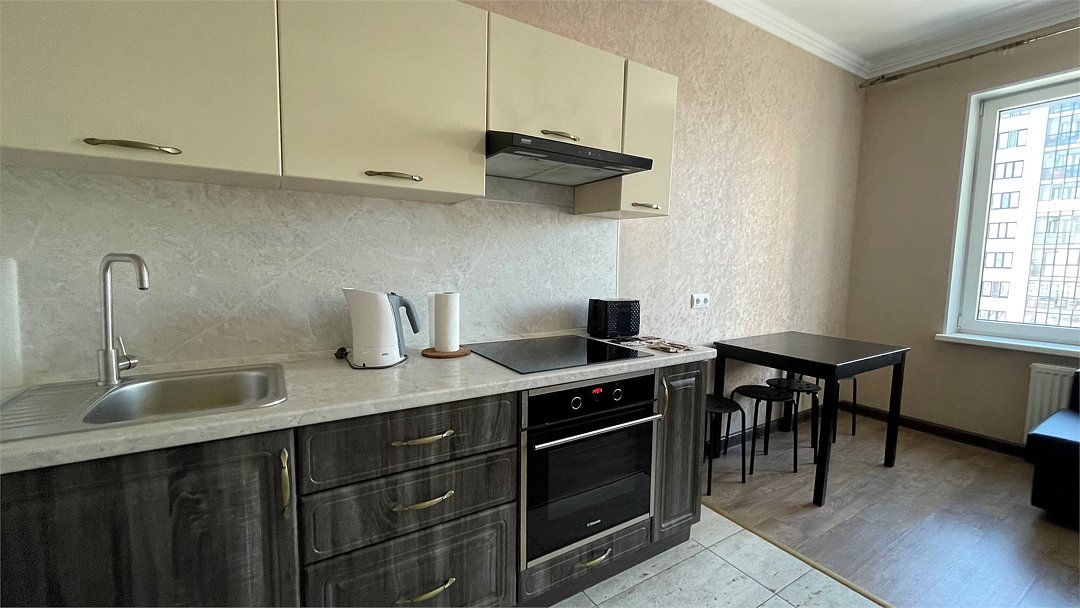 В спальне большая двуспальная кровать с удобным матрасом средней жесткости. В гостиной угловой диван, который раскладывается в полноценное спальное место. Для дивана предусмотрен дополнительный матрас. Кухня оснащена всей необходимой техникой, посудой и столовыми приборами: холодильником, варочной панелью, духовым шкафом, микроволновой печью, электрическим чайником, комплект посуды для приготовления еды. В ванной комнате душевая кабина. Установлена стиральная машина и бойлер. Доплата за проживание с питомцем составляет 1500 рублей за весь период. Фактический адрес: ул. Алексея Козина д.3б, ул. Хакима д.44. ЖК "Современник". Этажи от 6 до 10.Услуги и удобства