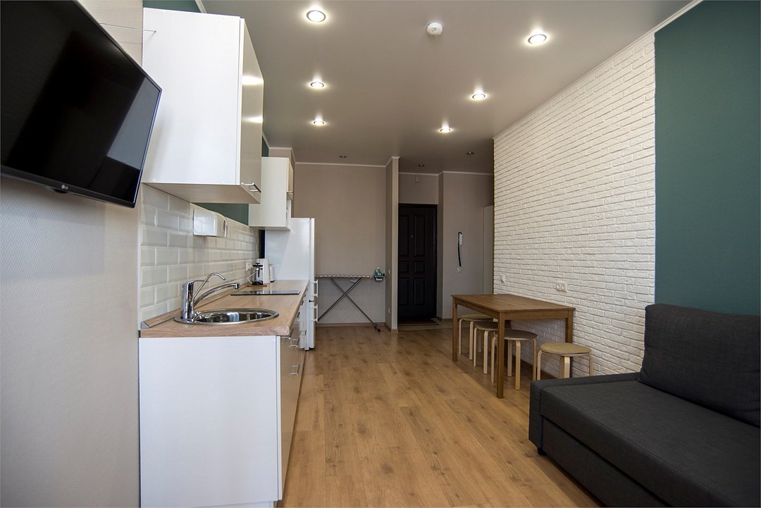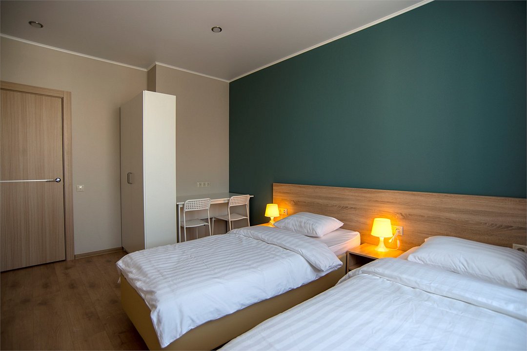 Комфортные четырехместные апартаменты в жилом комплексе бизнес-класса "Savin House". В кухне-гостиной двуспальный диван-кровать, а в спальне либо 2 раздельные полуторные кровати, либо 1 кровать king-size. В апартаменты этой категории мы заселяем с питомцами мелких пород до 3 кг. Стоимость услуги 1500 ₽. Фактический адрес: ул. Алексея Козина д.2Услуги и удобства