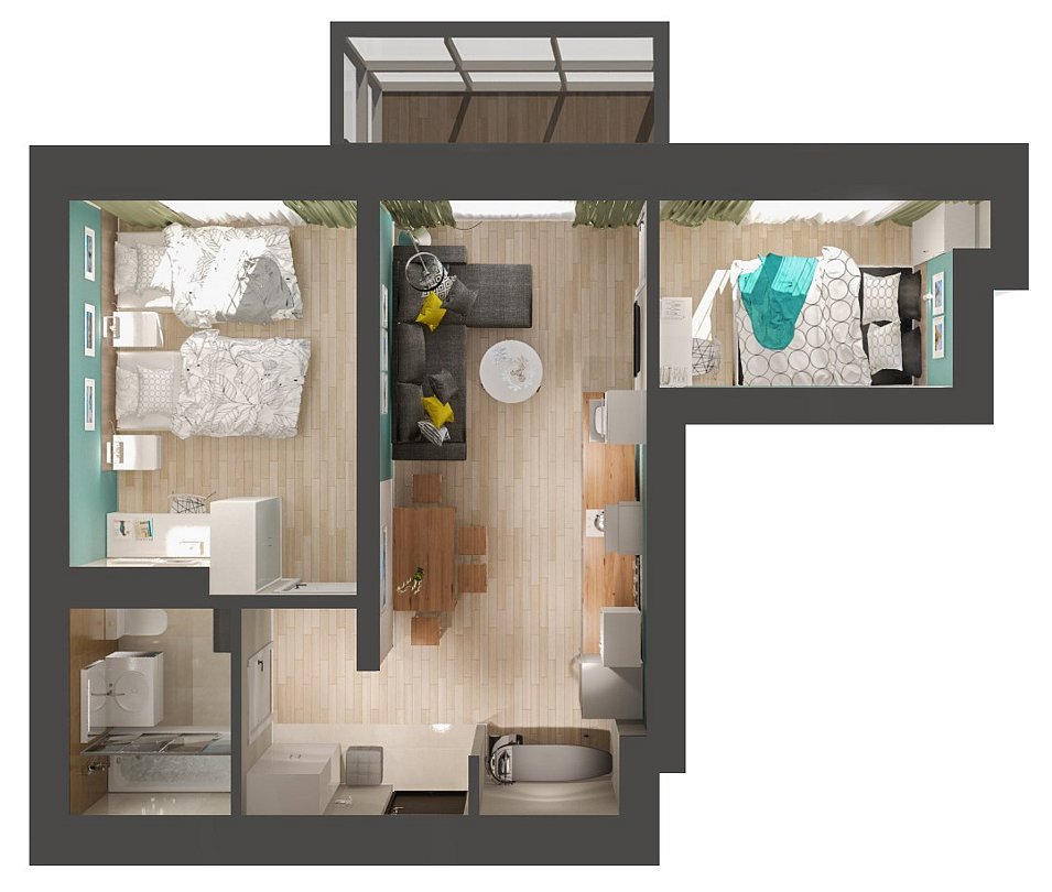 Апартаменты с гостиной и 2 спальнями в ЖК "Savin House"