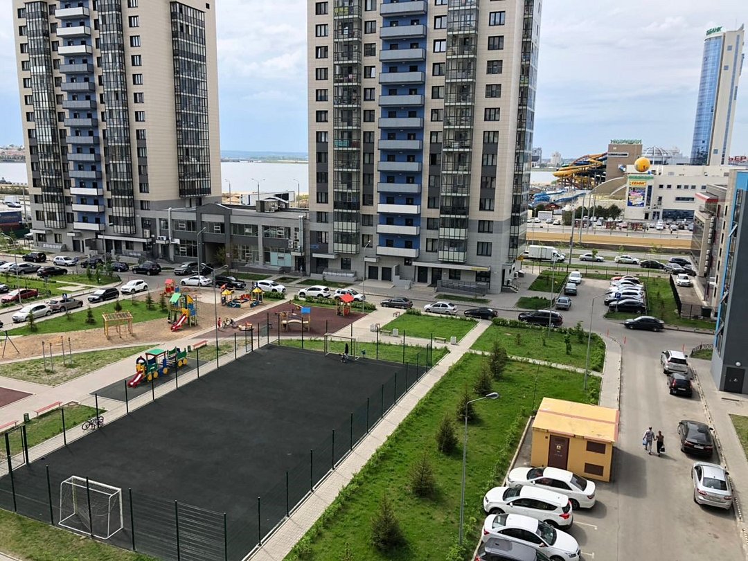 Апартаменты с 2 спальнями. Вид на реку Казанку и аквапарк "Ривьера"